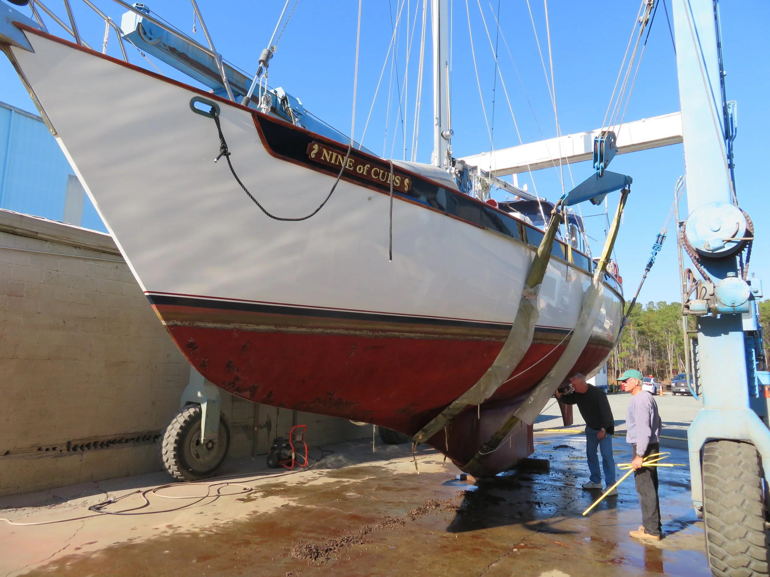 The last contingency for the sale was the haul-out for the hull inspection which occurred yesterday. We didn’t anticipate any problems nor were there any. Cups is scheduled to have her mast unstepped on Monday (yikes). David will help with the decommissioning and then she will be stored under cover for the winter here at the boatyard until early spring.