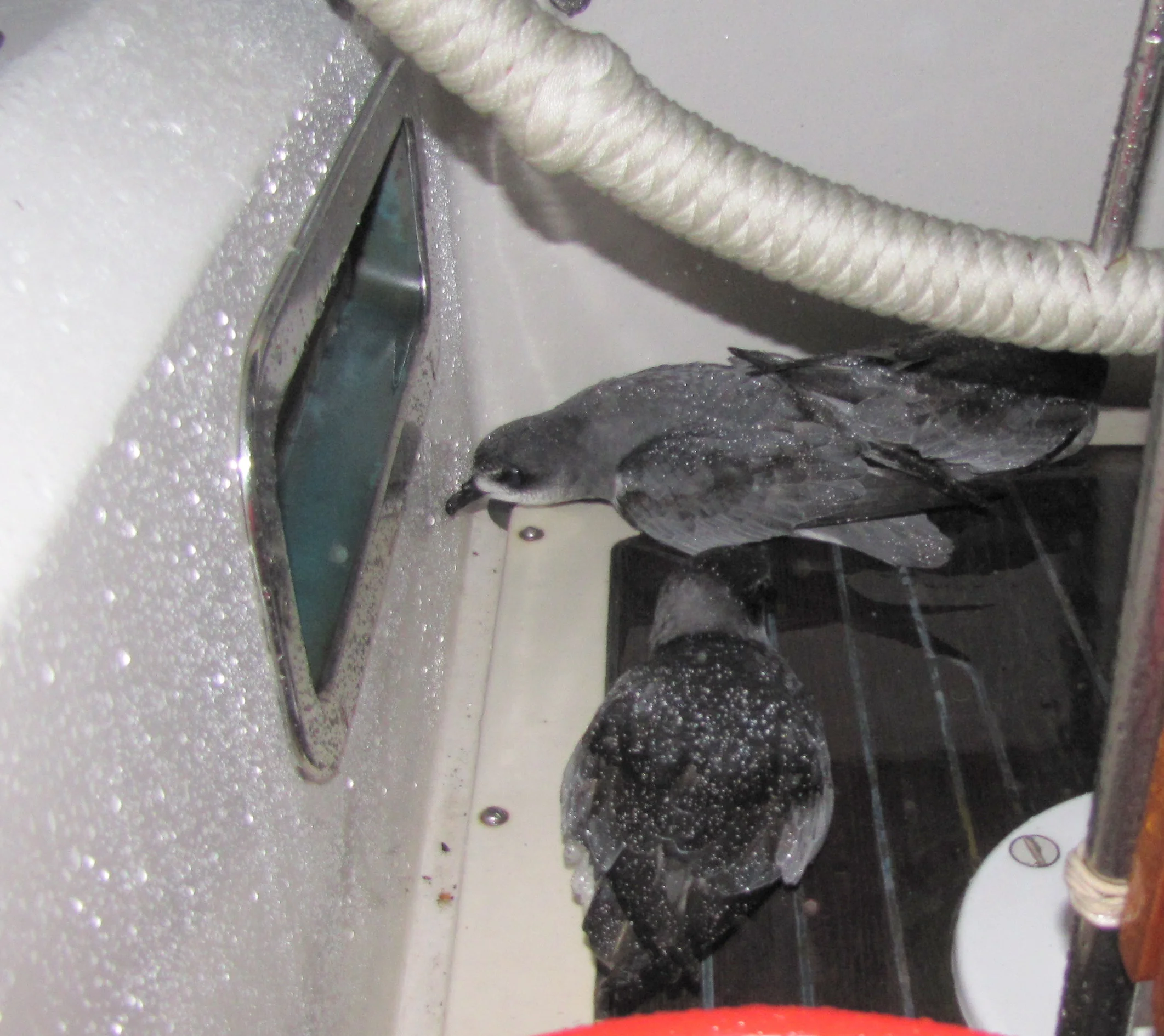 We heard knocking on the ports and activity in the cockpit. Several fairy prions had been attracted to our anchor light and then become confused when they landed.