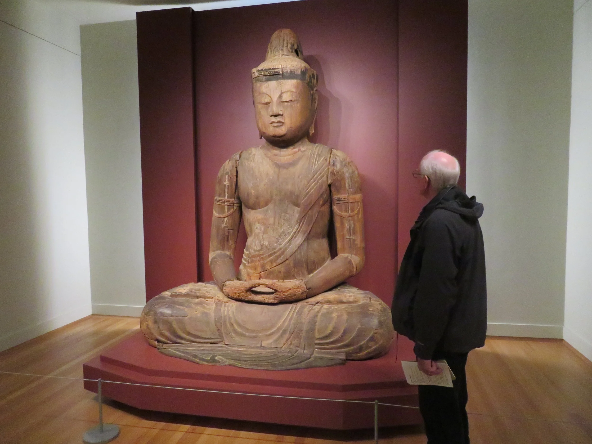 We headed up to the 6th floor to view the Asian galleries … an extensive collection of artifacts, textiles, costumes, jewelry and sculptures. A Japanese Buddha, reputedly the largest Buddha sculpture in the USA, was acquired by the RISD in 1933, found stored for centuries in an old farmhouse after a fire at a temple when it originally stood. We saw an exquisitely carved, paper-thin jade bowl created for the Chinese Emperor Quianlong c. 1760. It was so elegant and so delicate, it was almost beyond belief .