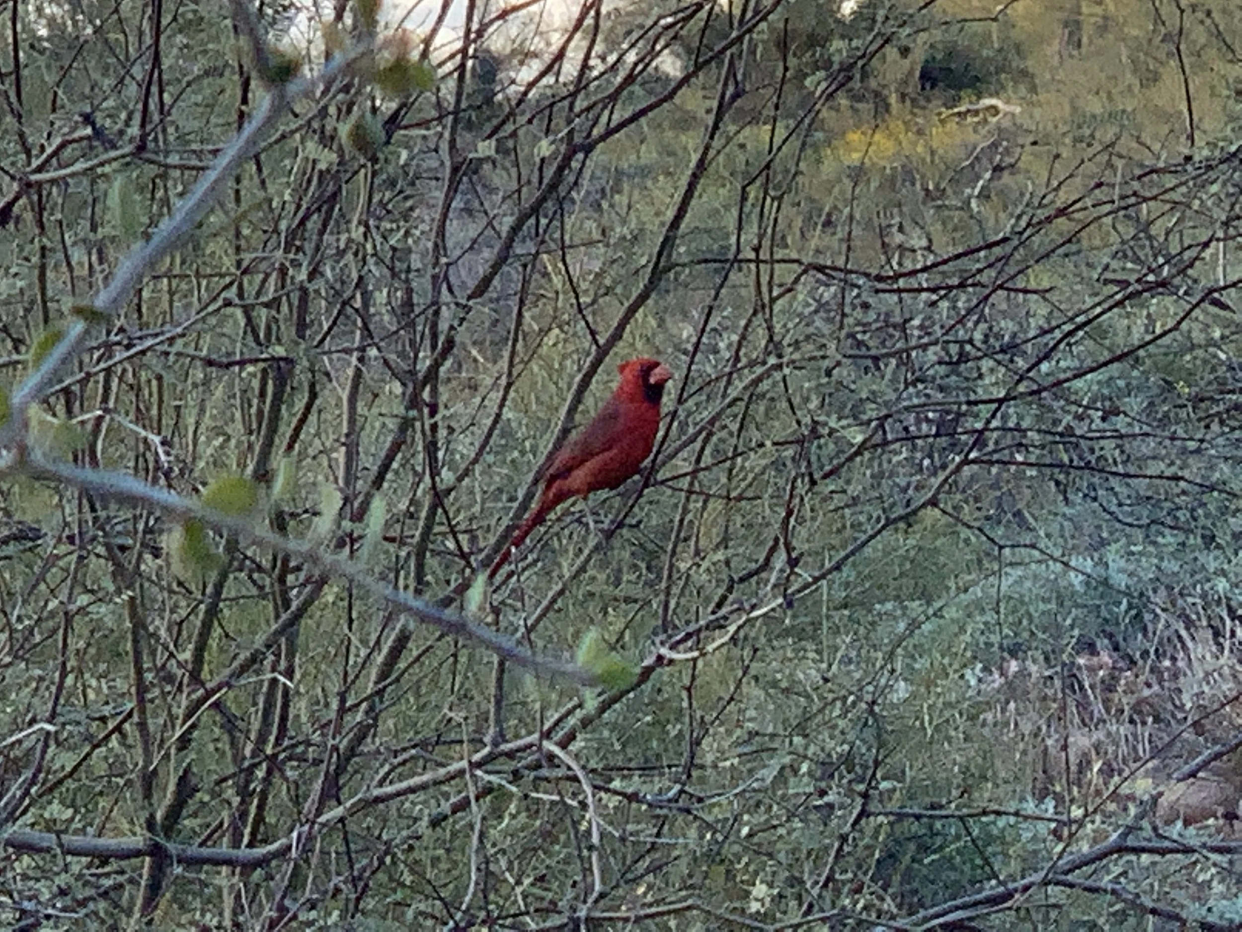 Our welcoming committee included a snake (bull or gopher… harmless), several small lizards, a chirping, bright red cardinal and a host of turkey vultures circling lazily overhead. The vultures are certainly ugly birds close up, but they are so very graceful as they soar through the sky, drifting effortlessly, gliding on wind currents.