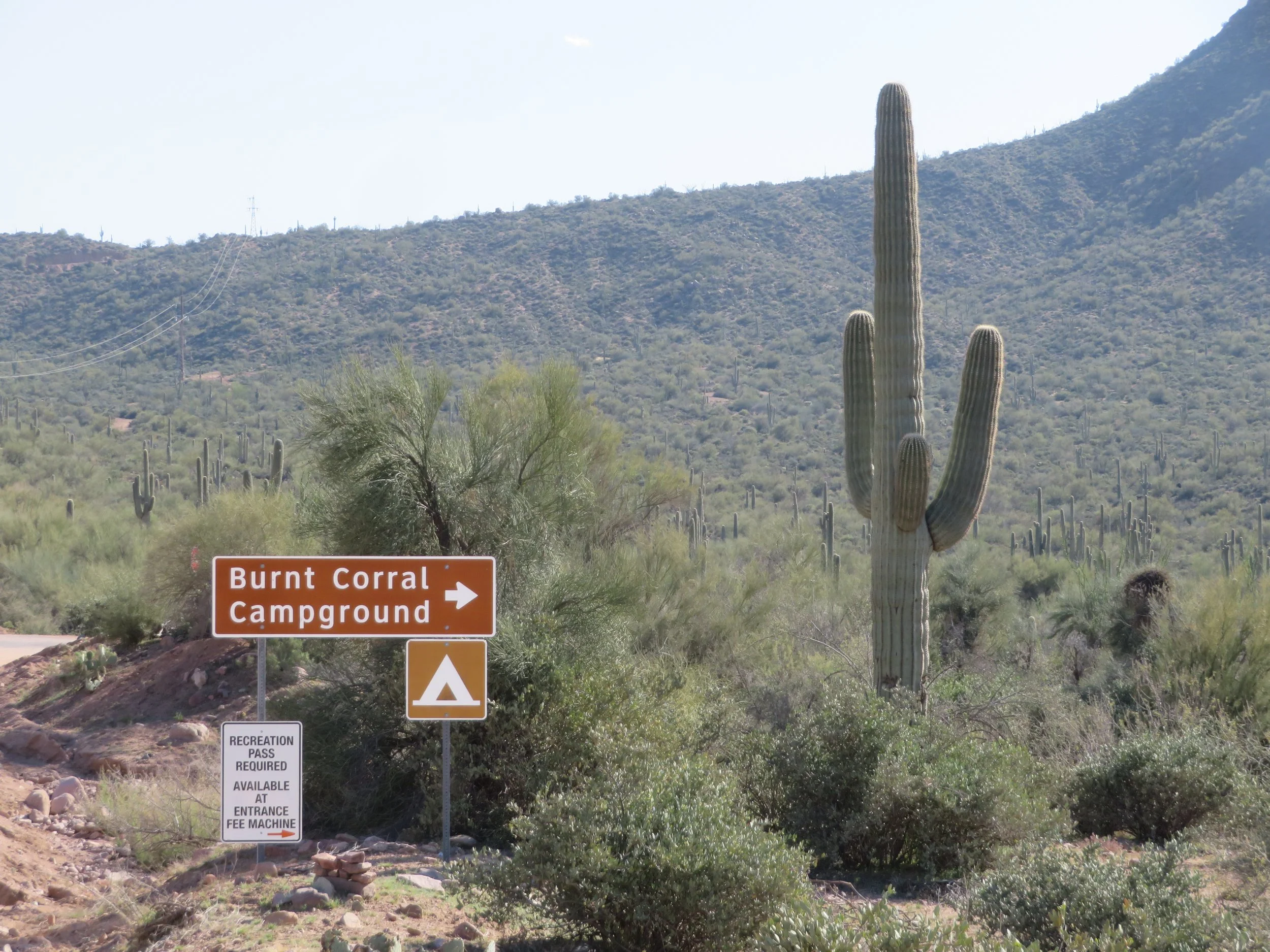 David had consulted Compendium and chosen Burnt Corral Campground on Apache Lake which sounded like an ideal spot to spend our first camping days. We passed numerous campsites along Roosevelt Lake and wondered if we should just grab one, but decided to continue on. The turnoff for Apache Lake Trail (AZ-88) led us past Roosevelt Dam where the pavement abruptly ended and turned to gravel. The six-mile, tooth-jarring ride to the campground was worth every bump and jounce. The campsites stretched from the lake’s edge up cactus-studded hills.