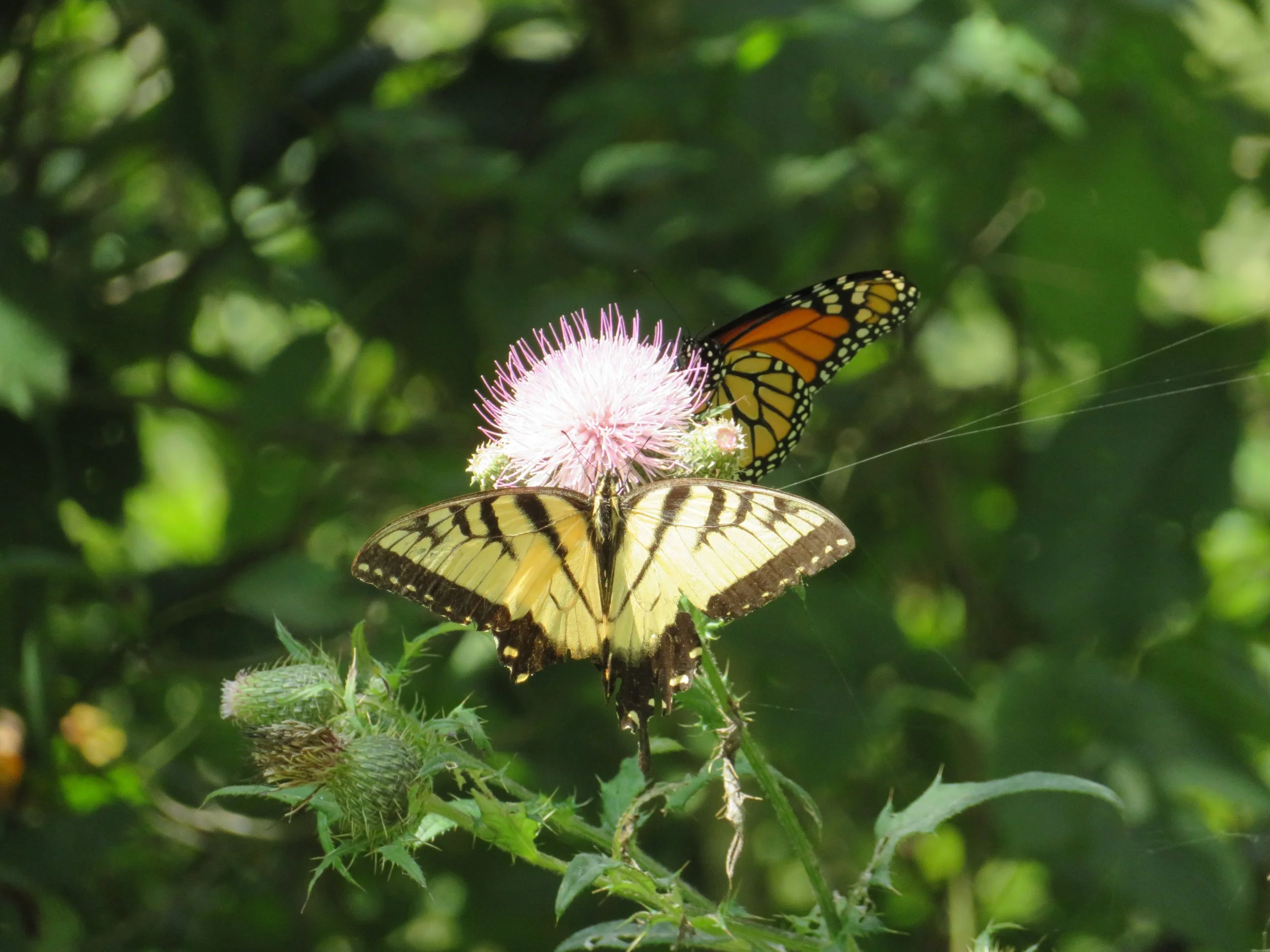 Thistles were in bloom along the trailside and butterflies were everywhere… swallowtails, checkerspots, cabbage whites, skippers, viceroys… a kaleidoscope of butterflies!