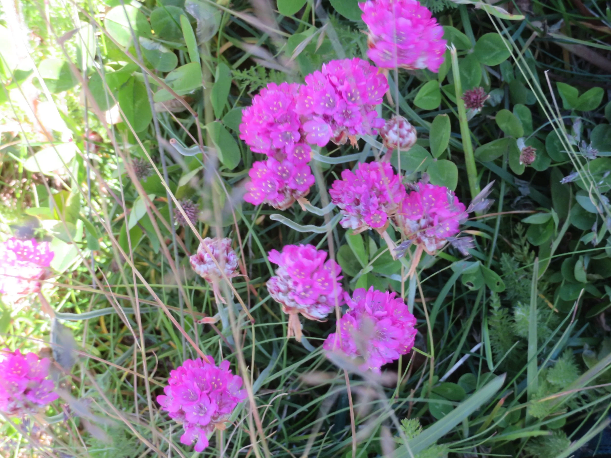 We continued onto Bishop’s Beach and wandered along the sandy shore. The tide was low and the wrack line was littered with debris. We did find some wildflowers to add to our photographic collection: seathrift and Alaskan paintbrush.
