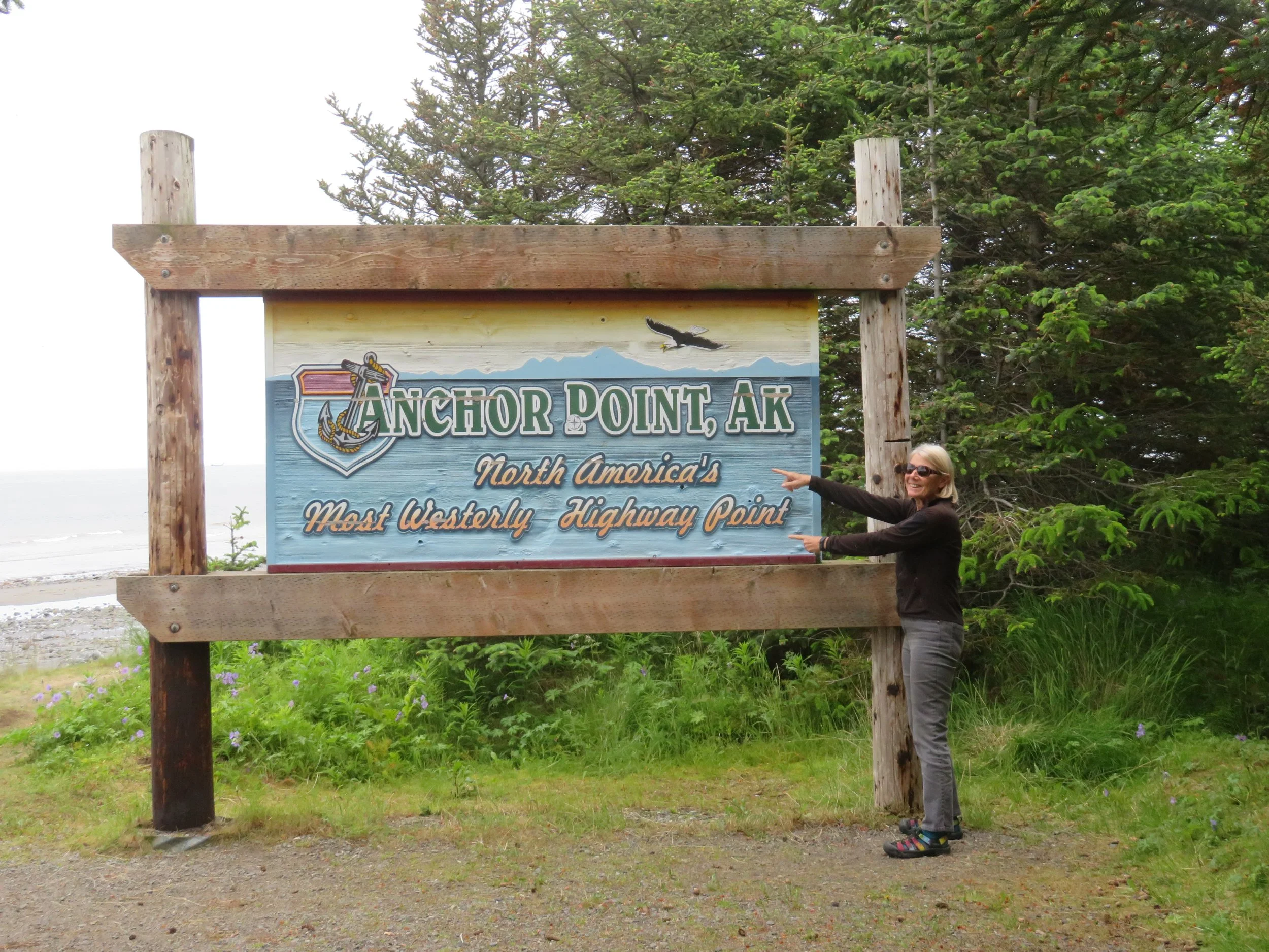 Back on the Sterling Highway, we took another brief detour to Anchor Point, so named because Captain Cook lost an anchor here… very clever name, Captain. Anchor Point claims the title of the ‘North America’s Most Westerly Highway Point’. The Milepost guide continues to be an excellent resource for us and we consult it regularly before and during our travels to make sure we don’t miss anything.