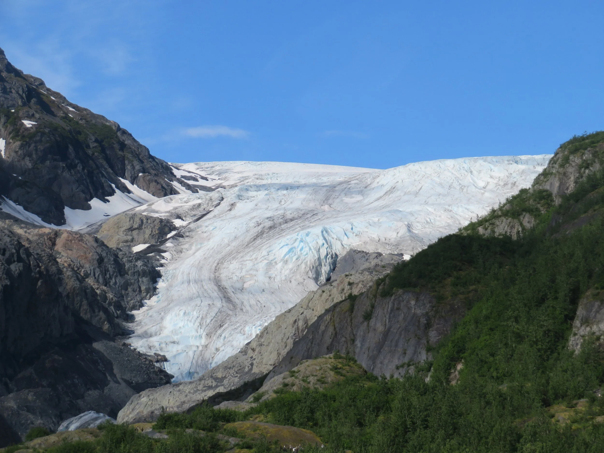 A ‘valley’ glacier, Exit descends ~3000’ in four miles providing a great vista from the overlook accessed via an easy 2-mile loop trail. Due to constant recession over the past years, it’s not possible to walk up and touch the glacier any longer, but you can get pretty close, feel its ‘cold’ and, if you listen carefully, hear it ‘talk’.