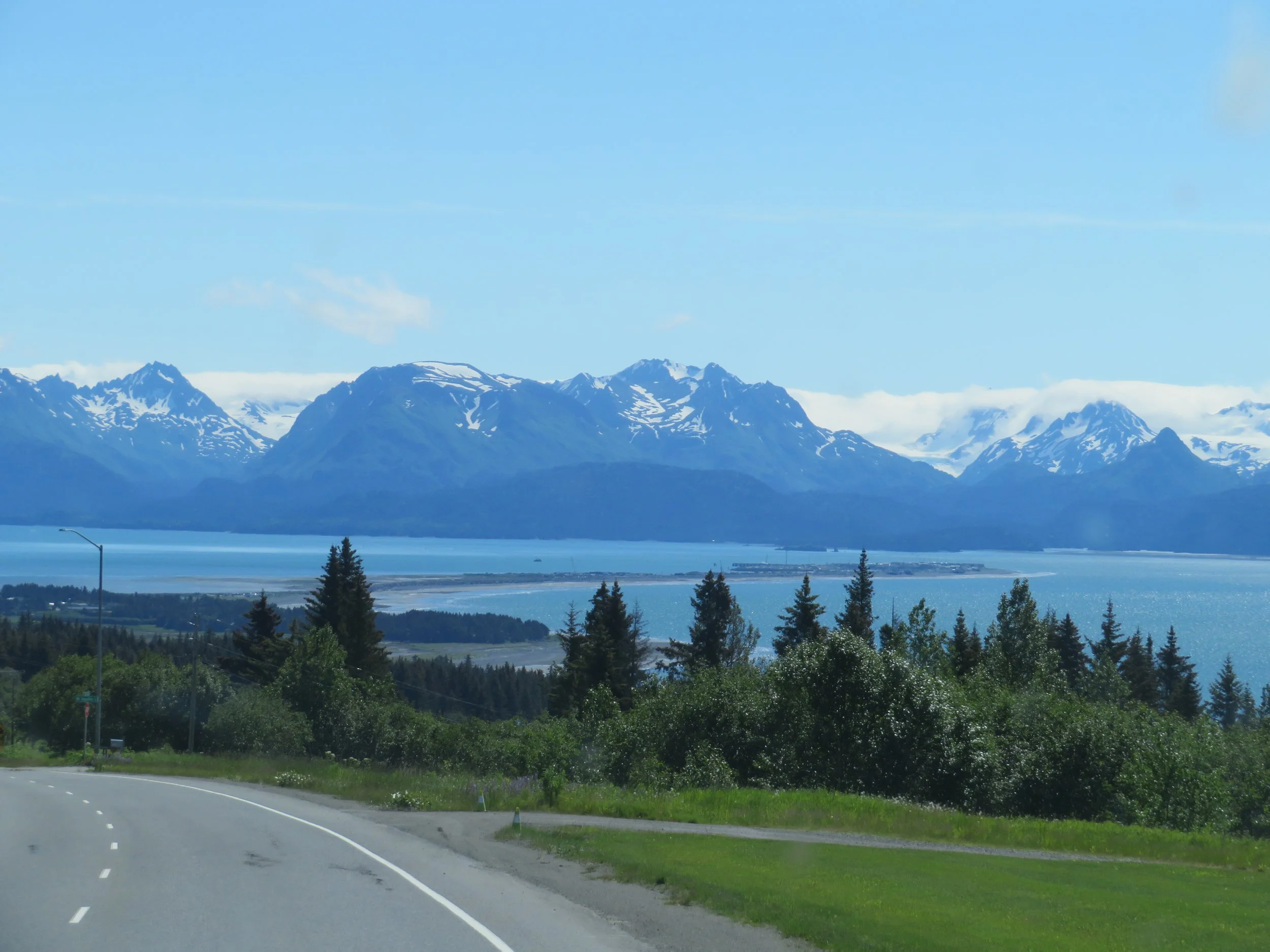 The fog dissipated quickly. It sprinkled off and on for a minute or two then the sun came out. Twenty miles north of Homer… here was our view!