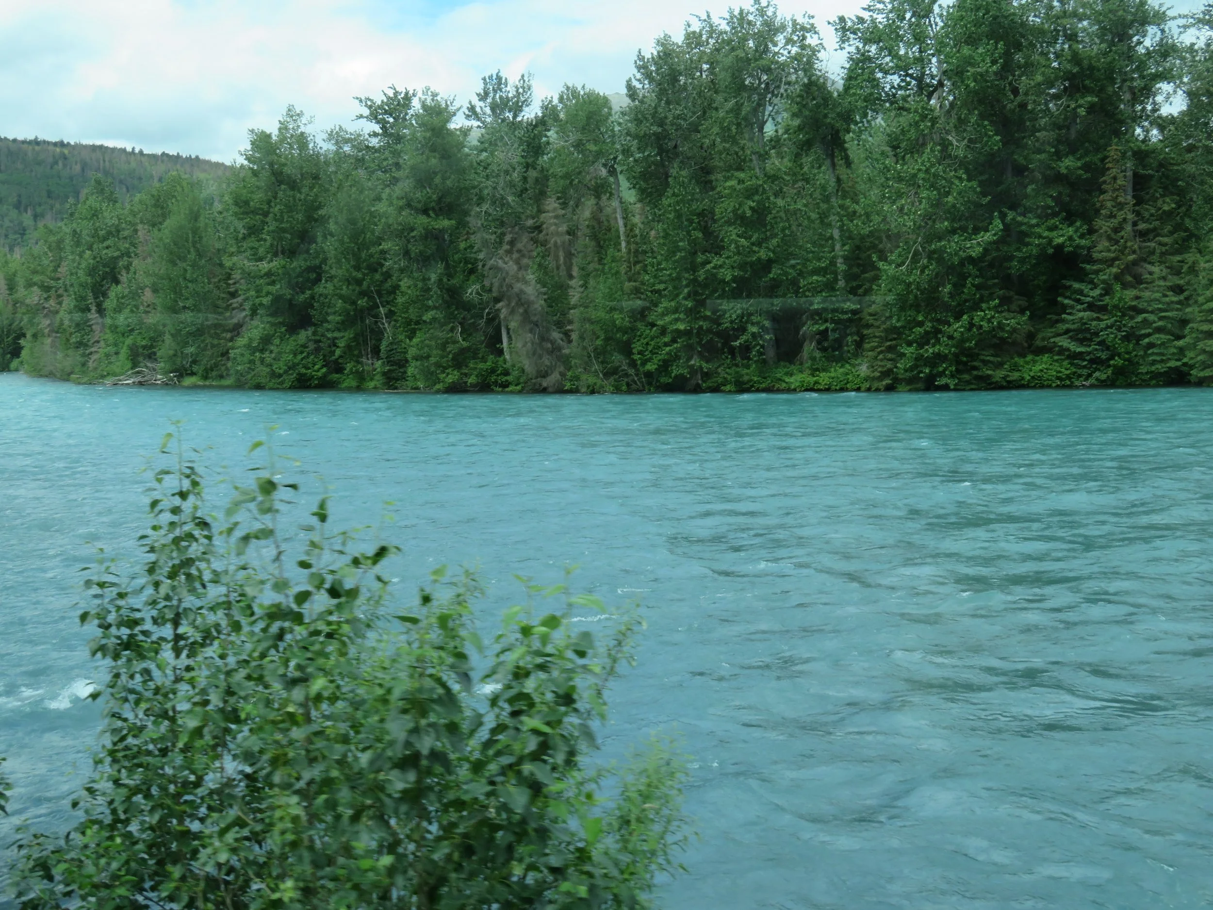 We stopped briefly at the Quartz Creek Campground and ‘borrowed’ a site long enough to cook up several meals on the outside chance that it just ‘might’ rain again. Heading west we passed the impossibly turquoise-blue waters of Kenai Lake.