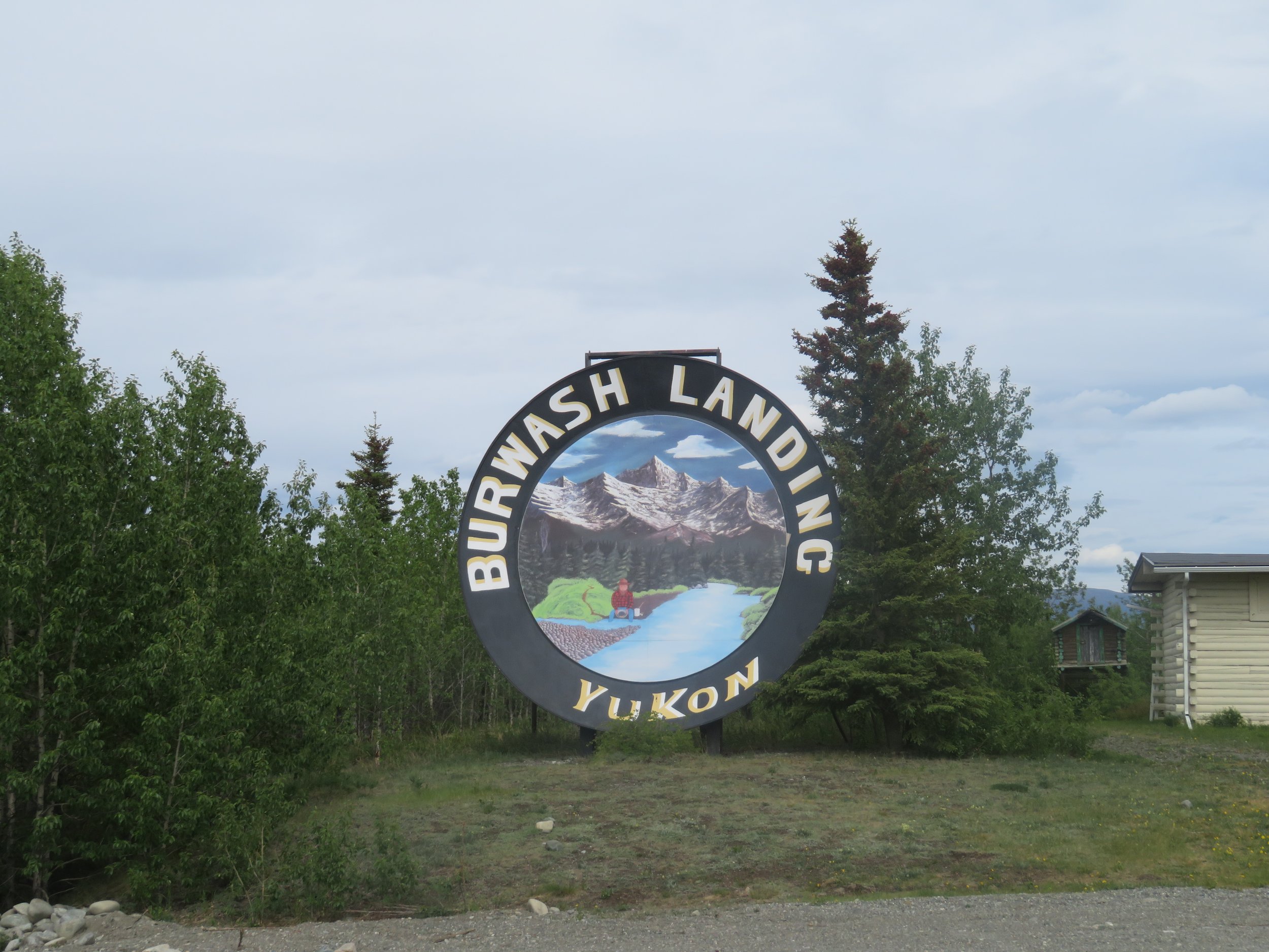 A giant goldpan welcomed us to Burwash Landing. We took a photo on the fly.
