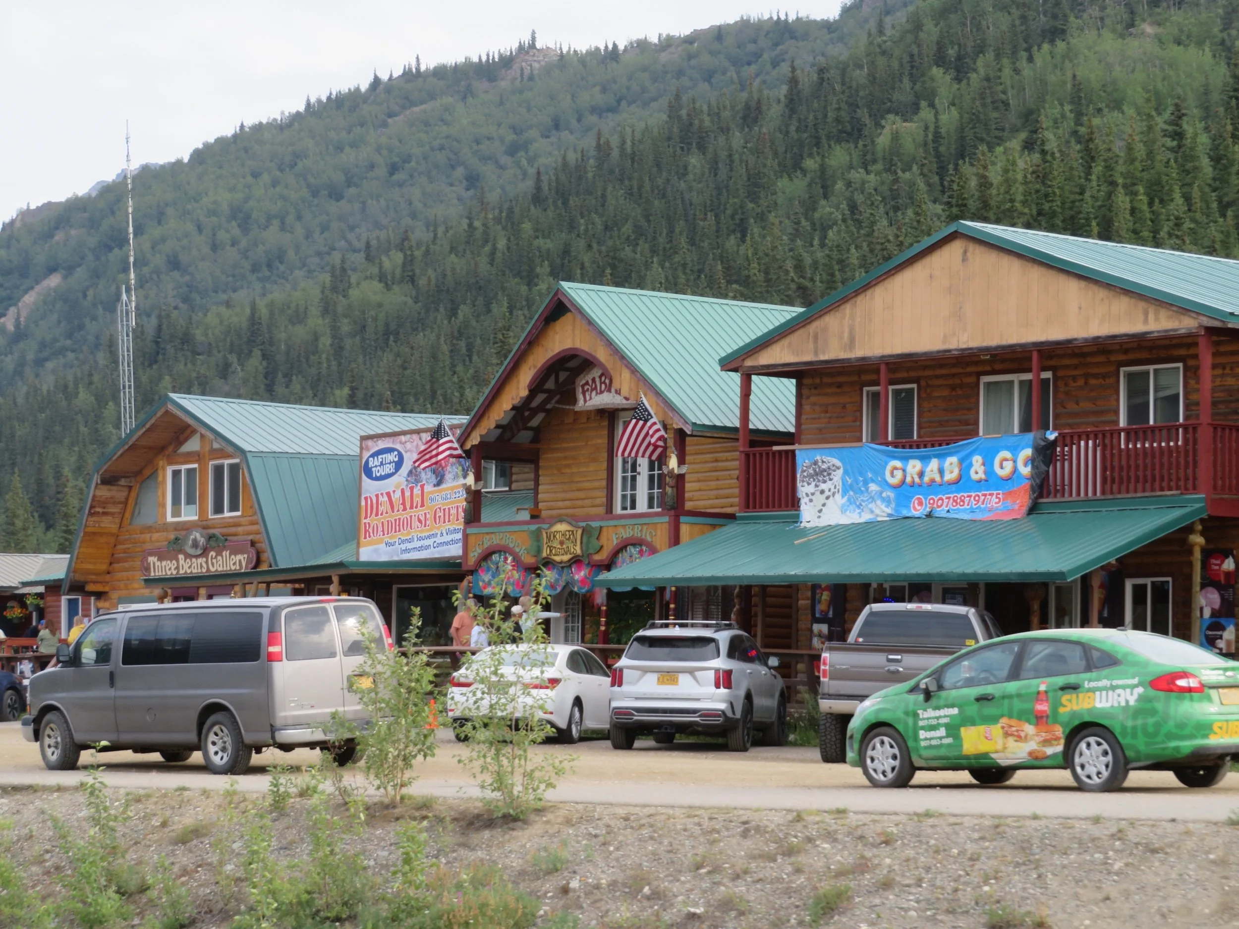 We saw the turnoff sign for the national park, but since food supplies were low, we needed to replenish the larder. Denali Village is only a mile or two north of the park entrance opposite the Nenana River. There are all sorts of shops, tours, rafting companies, hotels and convenience stores, but shopping for groceries there was not an option. Instead, we headed to Healy, the noted ‘supply town for Denali’ about 14 miles north.