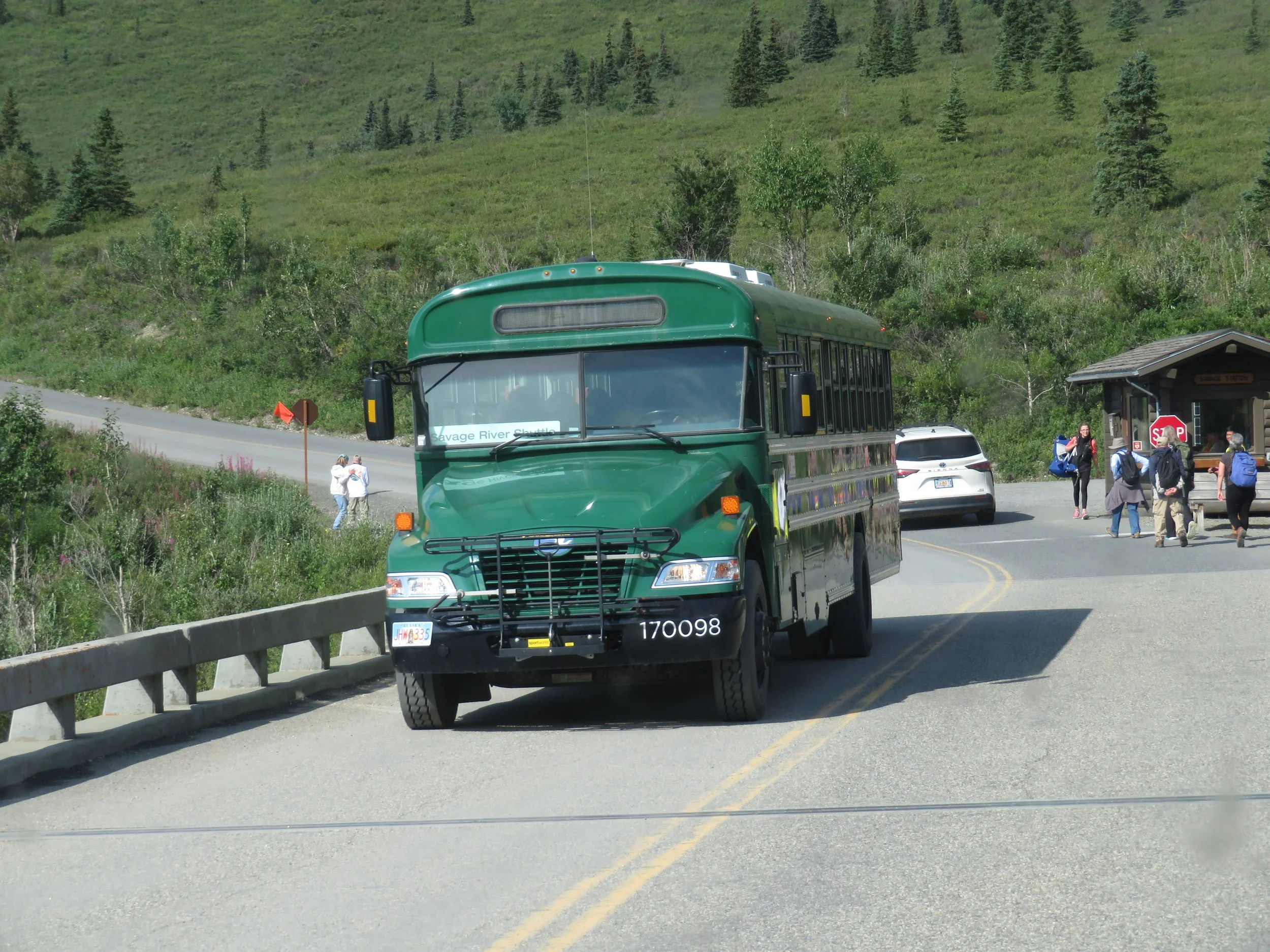 Taking a full school bus for a 43-mile, 5-1/2 hour narrated tour at $141.25/pp on a gravel road didn’t seem all that appealing to us. What did appeal, however, was a 3-day stay at the Teklanika Campground at Mile 29.