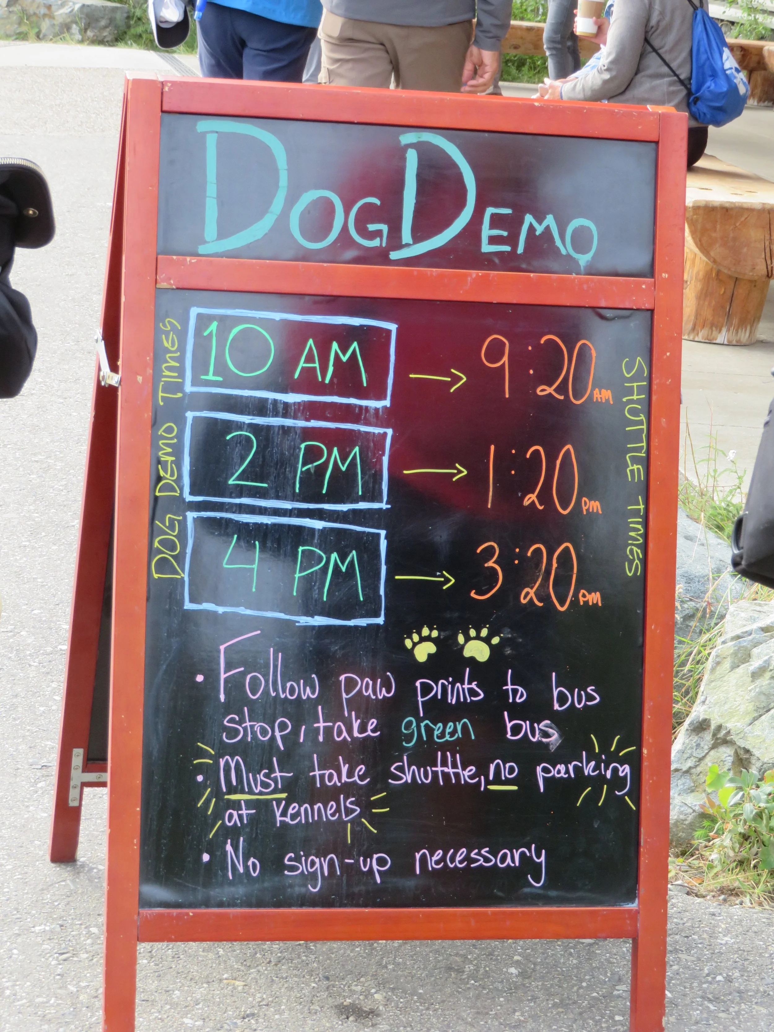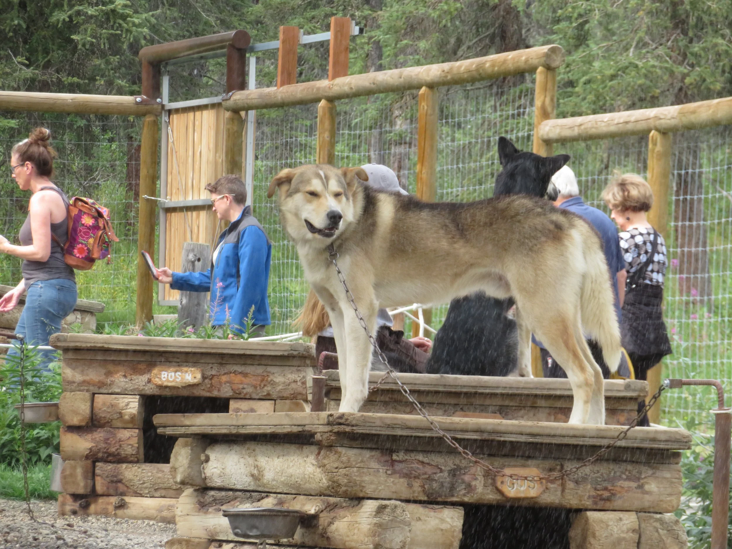 One activity offered at the park is a visit to the Sled Dog Kennels. We’d seen the sign for the shuttle schedule at the Visitors’ Center and headed to the shuttle stop the next day to attend the presentation.