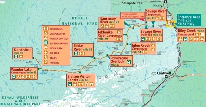 After a week at Denali State Park‘s K’esugi Ken Campground, we drove ~100 miles north on the Parks Highway to Denali National Park and Preserve for three days of reserved sites. Par for the course for us, we had made campground reservations at the last minute… about 1-1/2 weeks in advance which is waaaay far in advance for us, but luckily, there was still room.
