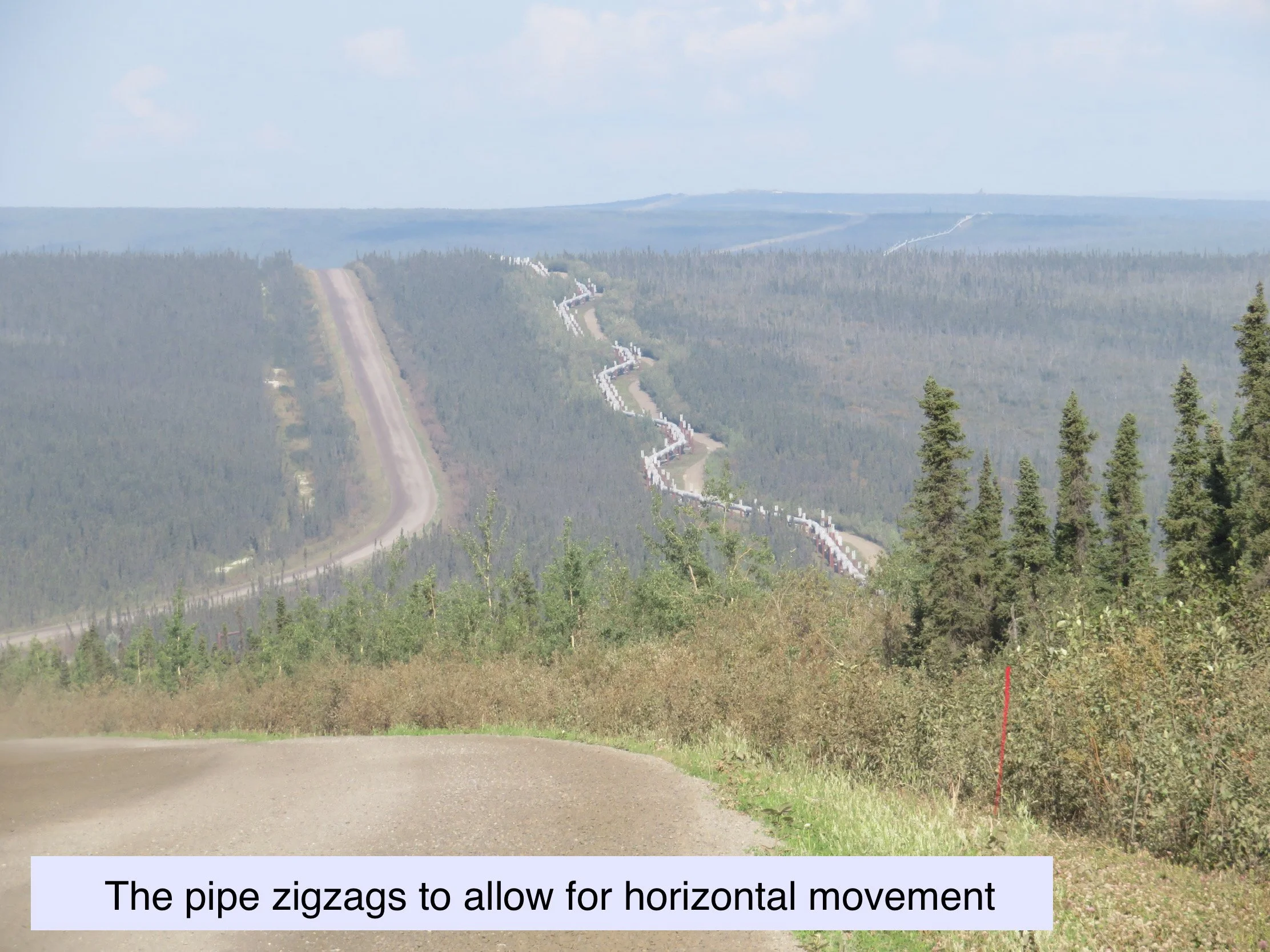 While access to the pipeline is controlled to some extent, it is not feasible to totally restrict access to all 800 miles of it, if for no other reason than it would block animal migration routes. As we traveled along the pipeline, there were literally hundreds of places that we could have driven to and/or walked right up to the pipe. Thus, in addition to acts of nature that could cause the pipe to rupture or leak, there is a real possibility of human caused damage to the pipe, due to an accident, because of criminal mischief, or from acts of terrorism.