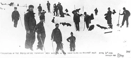The deadliest event of the entire Klondike Gold Rush occurred on April 3, 1898 on the trail leading up to The Scales. Heavy snow had accumulated on the higher slopes over the winter which became very unstable when the first days of April brought warm southerly winds. The Tlingit porters refused to pack into the area and warned the stampeders of the likelihood of avalanches, but most ignored the warnings and continued carrying their goods up the trail.