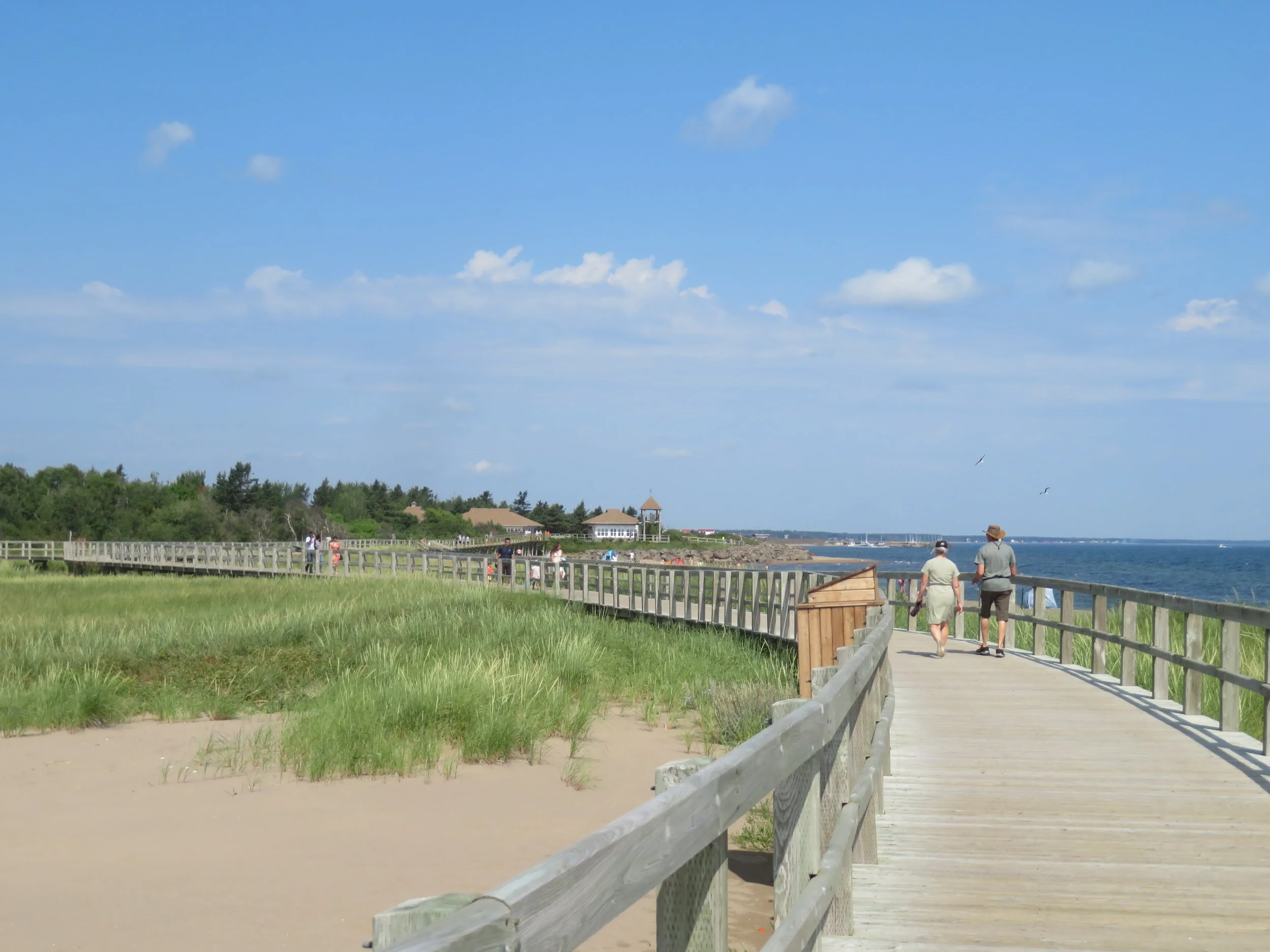 We walked to the very end of the serpentine boardwalk for a hazy view of the Bouctouche Bar Lighthouse far in the distance. The ocean breeze was a welcome change from the heat and humidity on shore.
