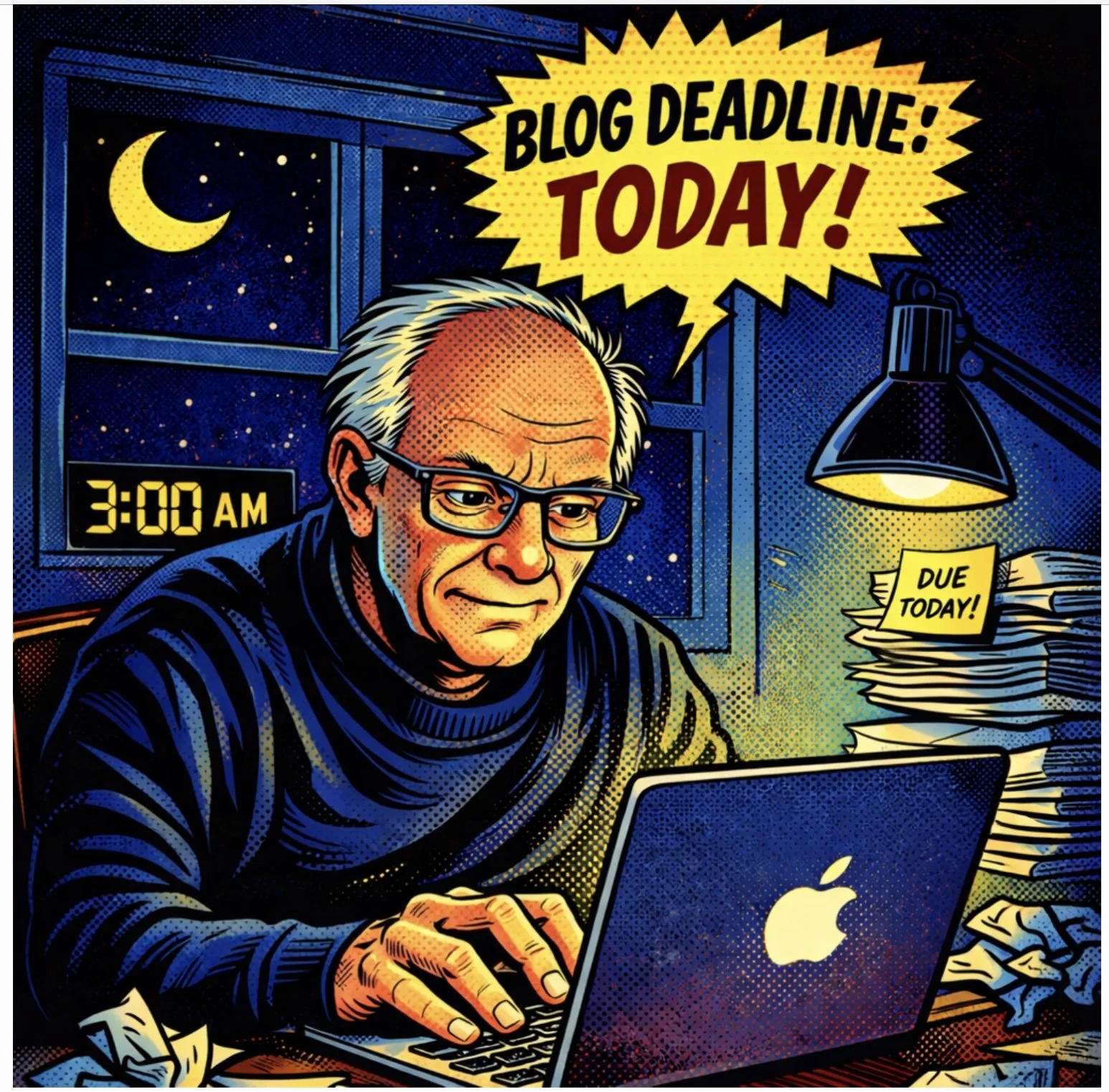 Sometimes things do work out, however. I’m almost done with this blog which is not due until tomorrow, and it’s only 4 PM. Of course, a snide, hateful person might point out that, while this blog is early for tomorrow’s deadline, it is about 3 months and 10 days late for the original deadline of September 6, National Procrastination Day.