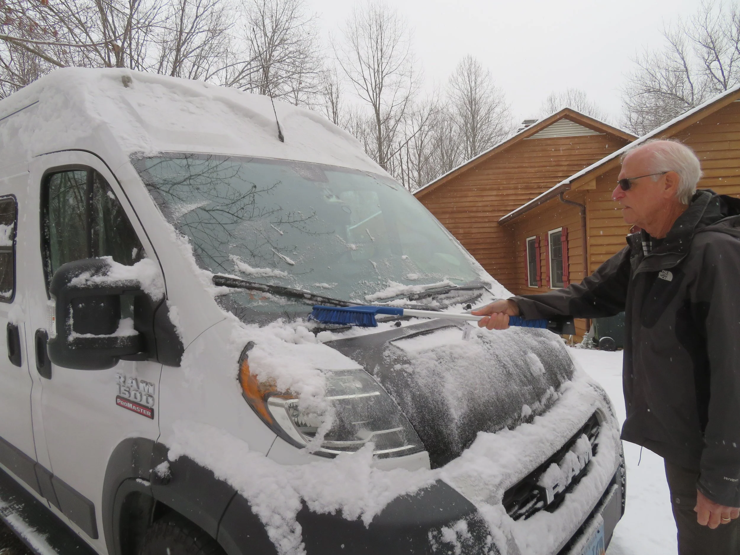 We woke to the proverbial ‘winter wonderland’ at John’s house. It had snowed during the night and Blanche was covered in 3-4” of the powdery, white stuff. It was dicey maneuvering the steep hill leaving John’s house, but Blanche remembered her early years and upbringing in Colorado and negotiated up and down the snow-covered hill like the trooper she is.