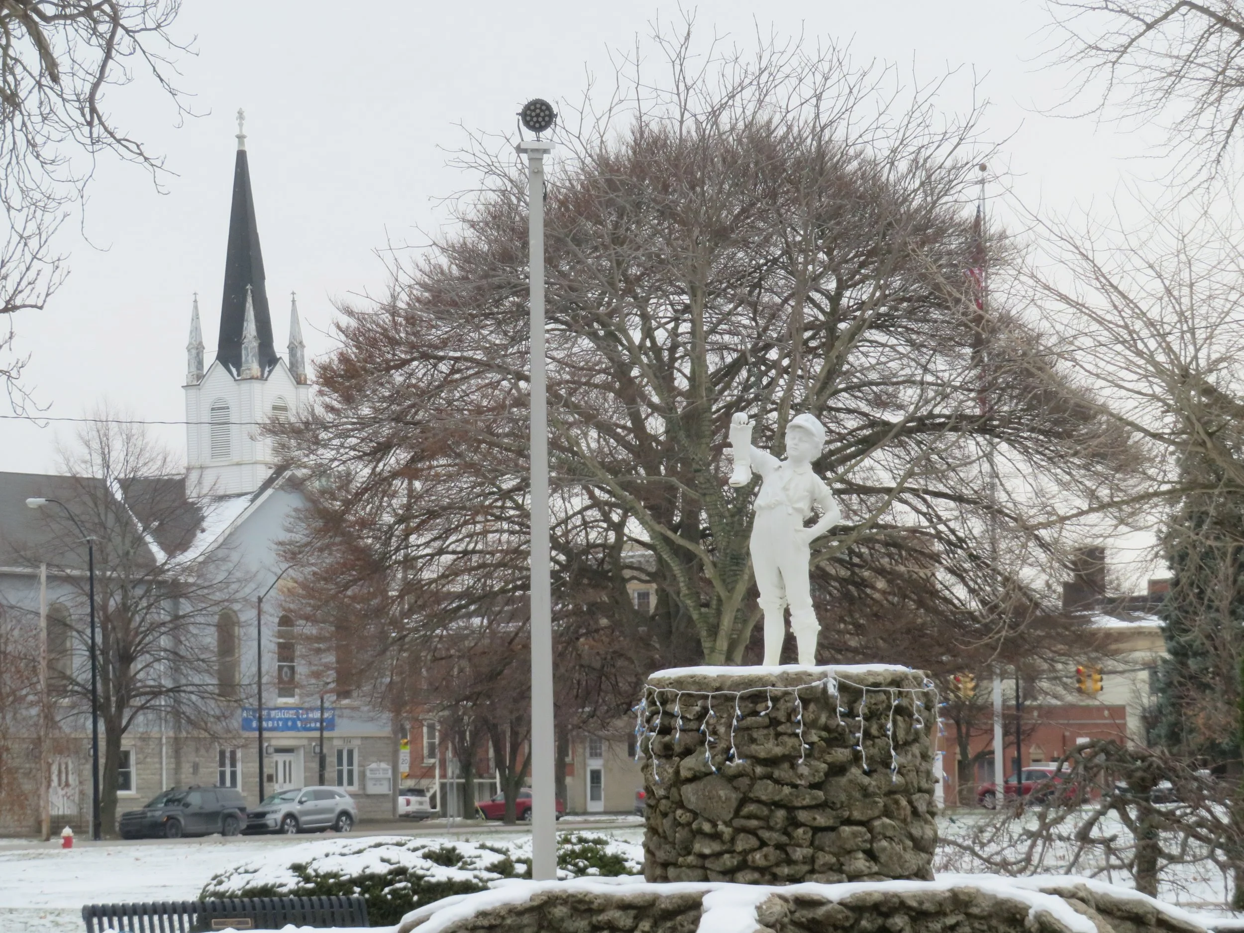 I’d read about the “Boy With The Boot”, a statue in Sandusky’s Washington Park and an iconic symbol of the city of Sandusky. I was surprised it was close by. The statue cast by J. W. Fiske Ironworks in New York City made its first appearance in Sandusky in 1895. What stands in the park today is a replica cast in bronze after the original sustained damage in the 1990s.