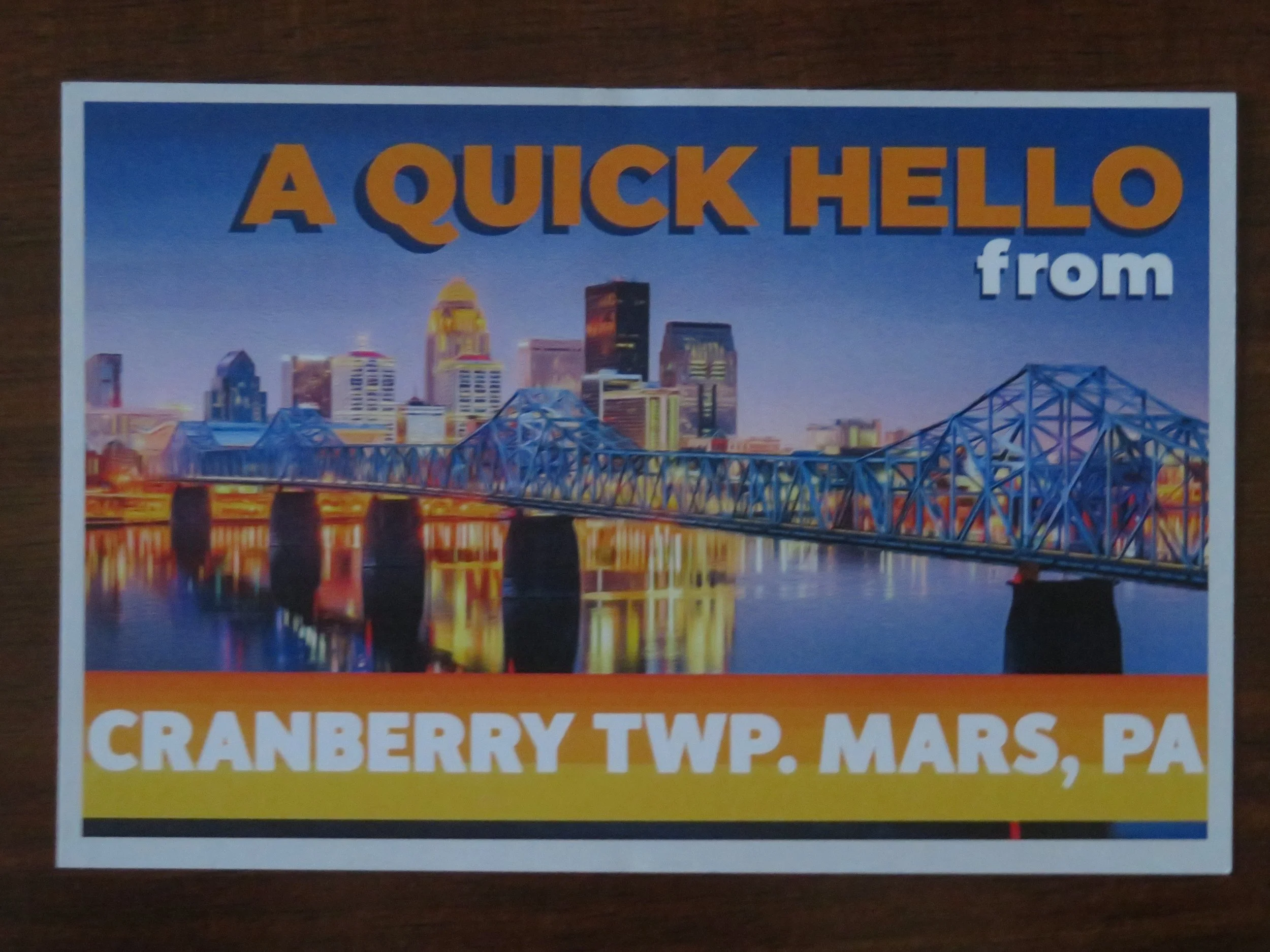 When we reached the main road, it was wet, but not slippery. It was a day without incident or amusement. A few more spits of snow fell throughout the day, but traffic was light and we made good time heading north towards Pittsburgh. We spent the night in Mars, Pennsylvania… a far better option than Uranus where we were a few days ago!
