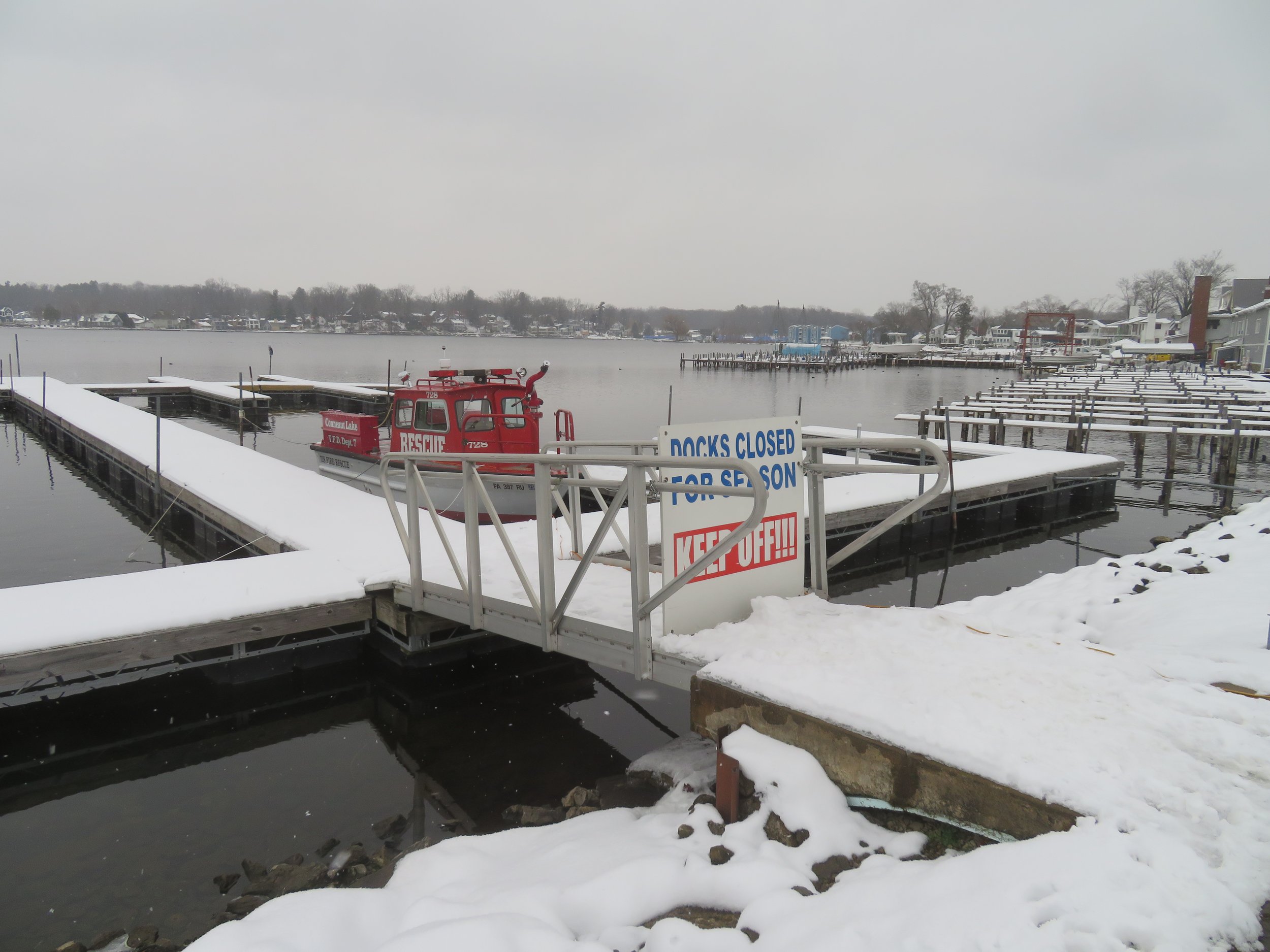 When we left Cleveland it was snowing and cold. Back on US-6 the roads were wet, but not slippery… yet. We drove past marinas along Lake Erie’s coast. All the boats were out of the water and buttoned up for winter.