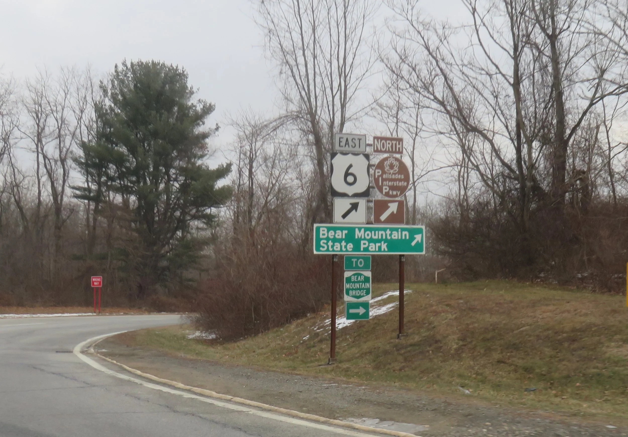 Over the New York State line with little fanfare and not even a welcome sign. Here the 78 miles of US-6 had multiple names: Long Mountain Parkway, Palisades Interstate Parkway and the best for scenery, the Bear Mountain Parkway.