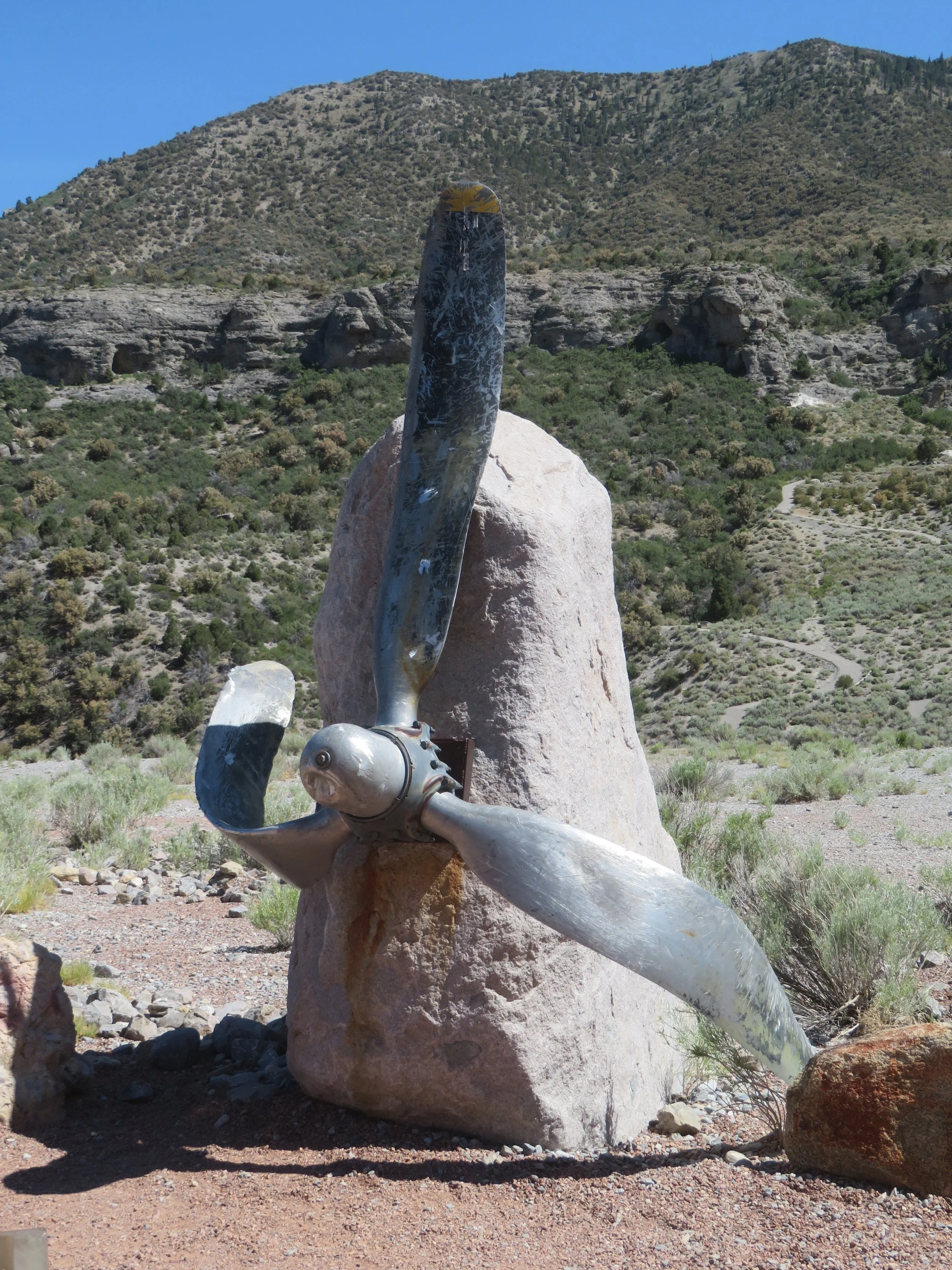 Outside, there is a Silent Heroes of the Cold War National Memorial which caught our attention. The highlight of the memorial is a propeller from a US Air Force C-54 transport plane that crashed on Charleston Peak in 1955 killing all 14 people aboard. Embedded in stone, the memorial immortalizes the individuals that worked covertly for the USA during its cold war with the Soviet Union. There’s mystery associated with the crash and how the government covered it up.