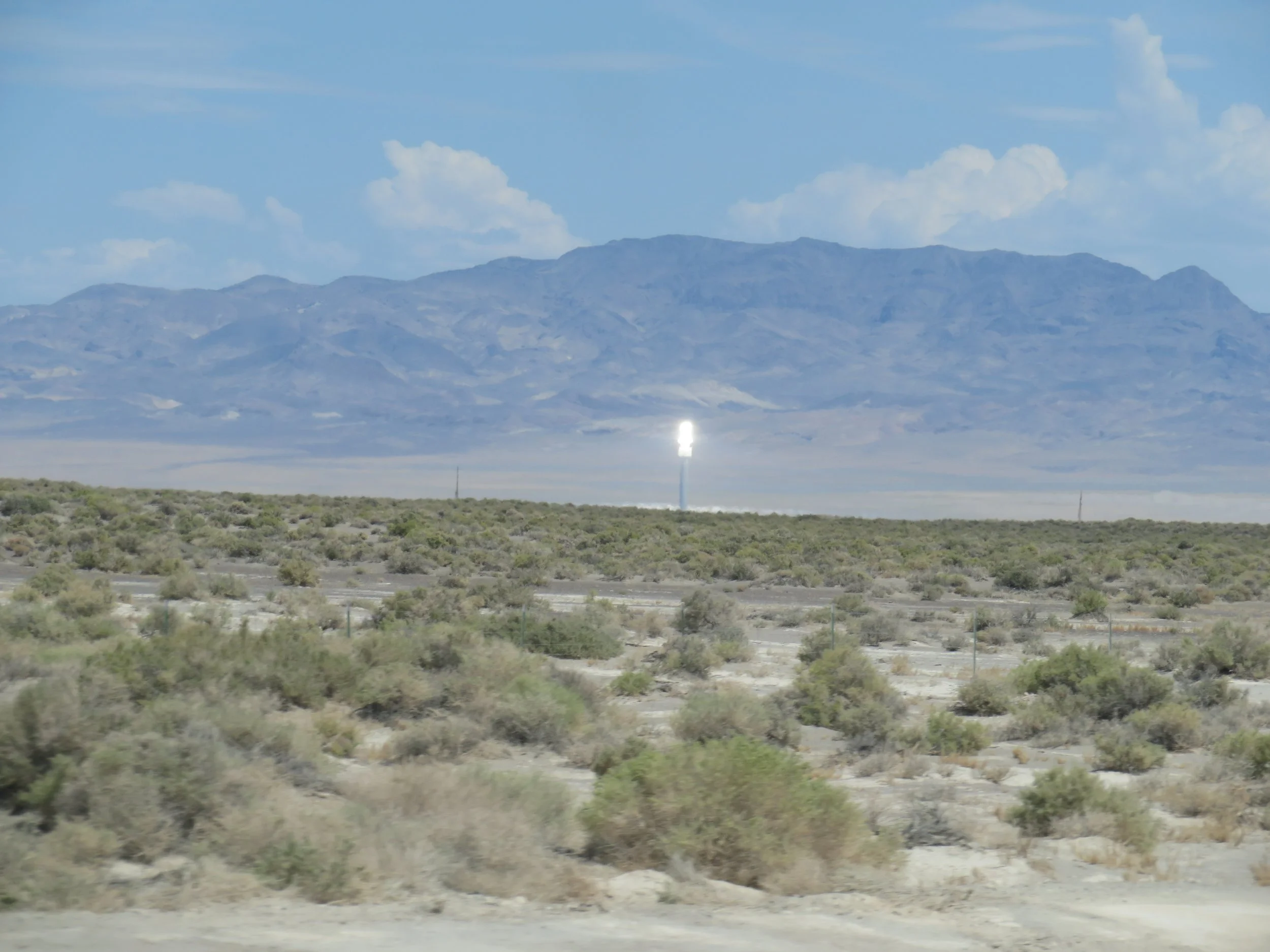 As we approached Tonopah, we couldn’t help but notice what appeared to be a huge spotlight sitting atop a tall tower. It was bright enough to create retinal afterimages if you looked at it for more than a few seconds. Rather odd, we thought. We weren’t too far from the infamous Area 51 – if we were more conspiracy minded, we might have assumed it was some secret, extraterrestrial related project.