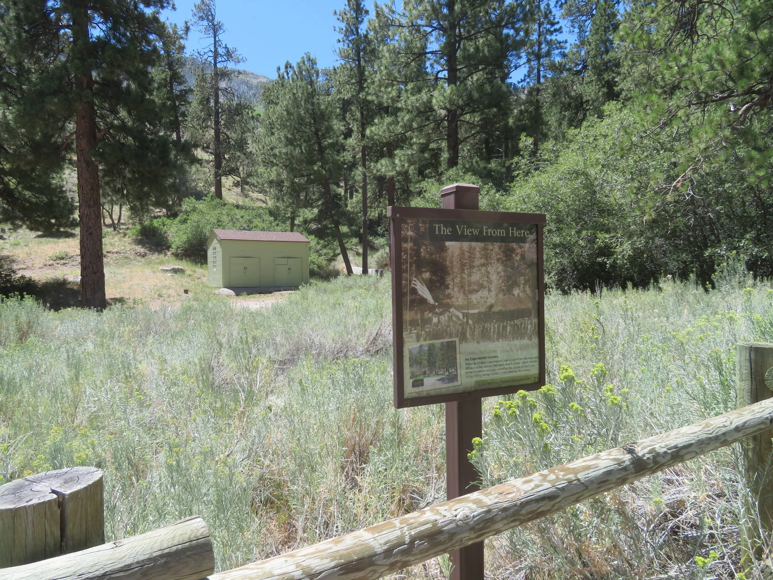As part of FDR’s New Deal programs, the CCC was established in 1933. It was the CCC that subsequently established the first Forest Service in the Mt. Charleston Area. The CCC's main goal was to improve America's public lands, parks, and forests and as such was responsible for building roads and trails as well as assisting in flood-control and soil conservation projects. The CCC’s legacy has been noticeable in so many of the national parks we’ve visited. We saw several of the CCC camp buildings from the 1930s still in use along the trail. Signs with old black & white photos provided a peek at life at the camps back in the 1930s.