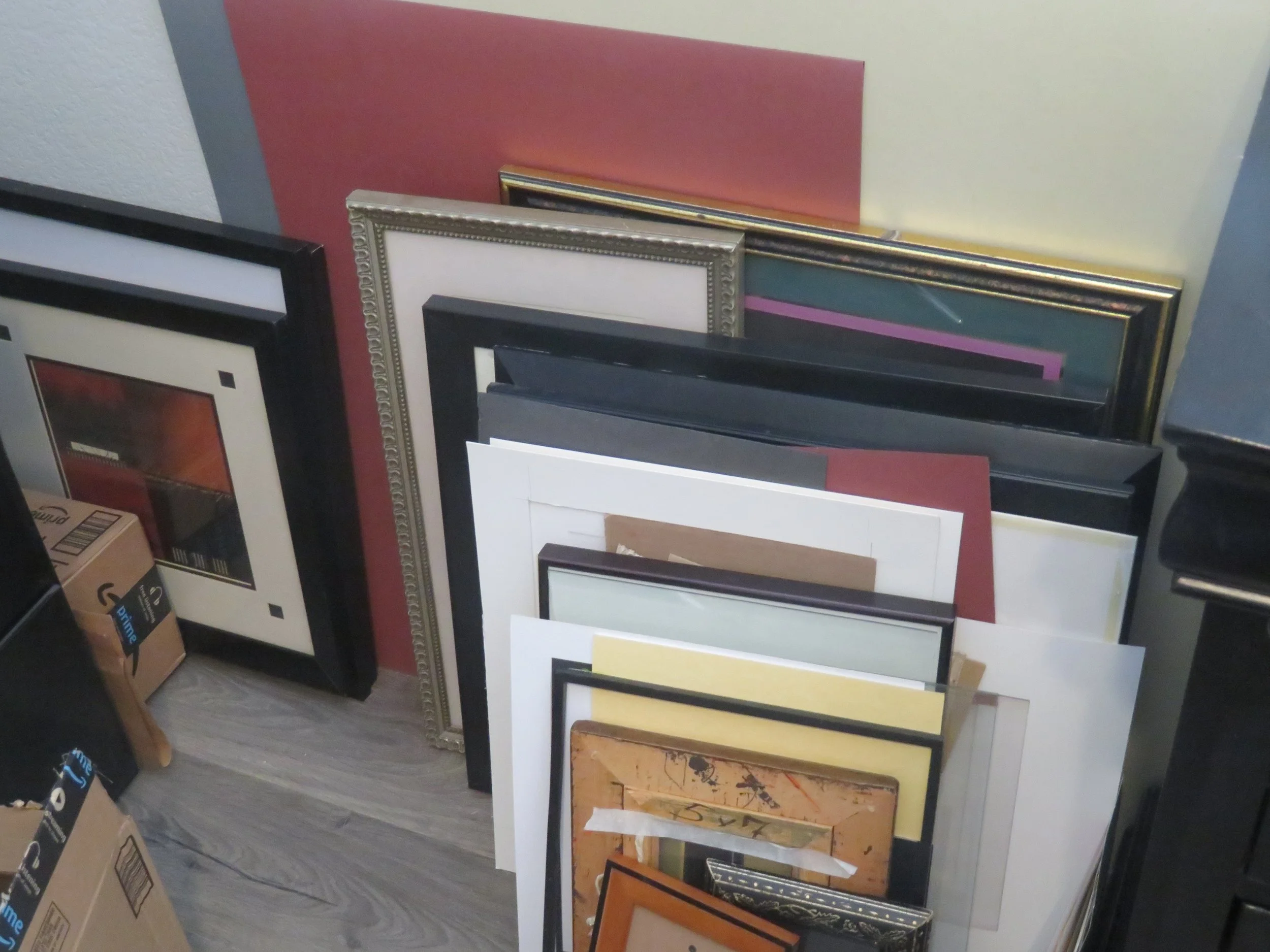 Now what about frames? We could buy new, of course, but that’s not as much fun as a scavenger hunt. We checked out Savers and Good Will and the local Salvos (Salvation Army to non-thrifters). But it was a local thrift shop, Castaways in nearby Henderson, that won the day. When we popped in to check out their stock of frames, they were having a ‘flash sale’… all frames and artwork 50% off. We picked out five new frames, all wooden with glass and matting intact for $11. When we got to the register, the clerk asked if we had any other discounts… Veterans, perhaps? Why, yes, we do… another 5% off. We left Castaways with five new frames feeling particularly satisfied with our purchases and our good luck in timing. Subsequently, we’ve picked up lots more as you can see.