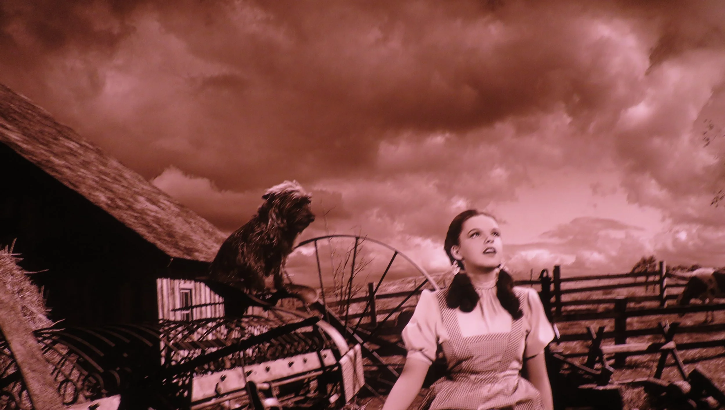 Sepia-toned Kansas versus Dorothy’s first View of Munchkinland