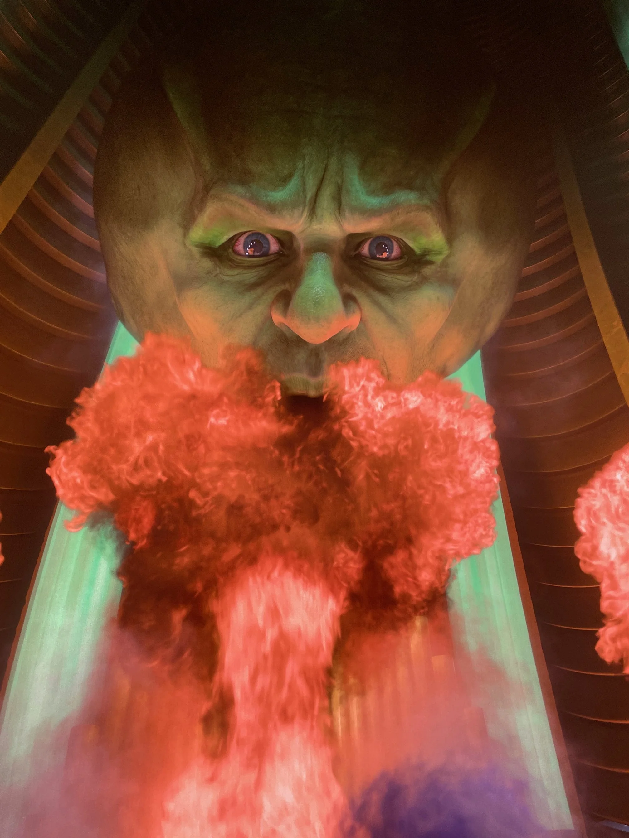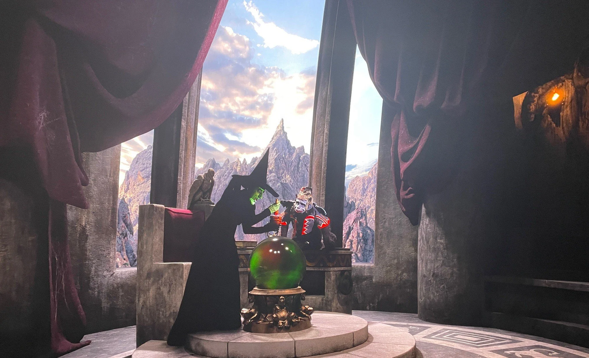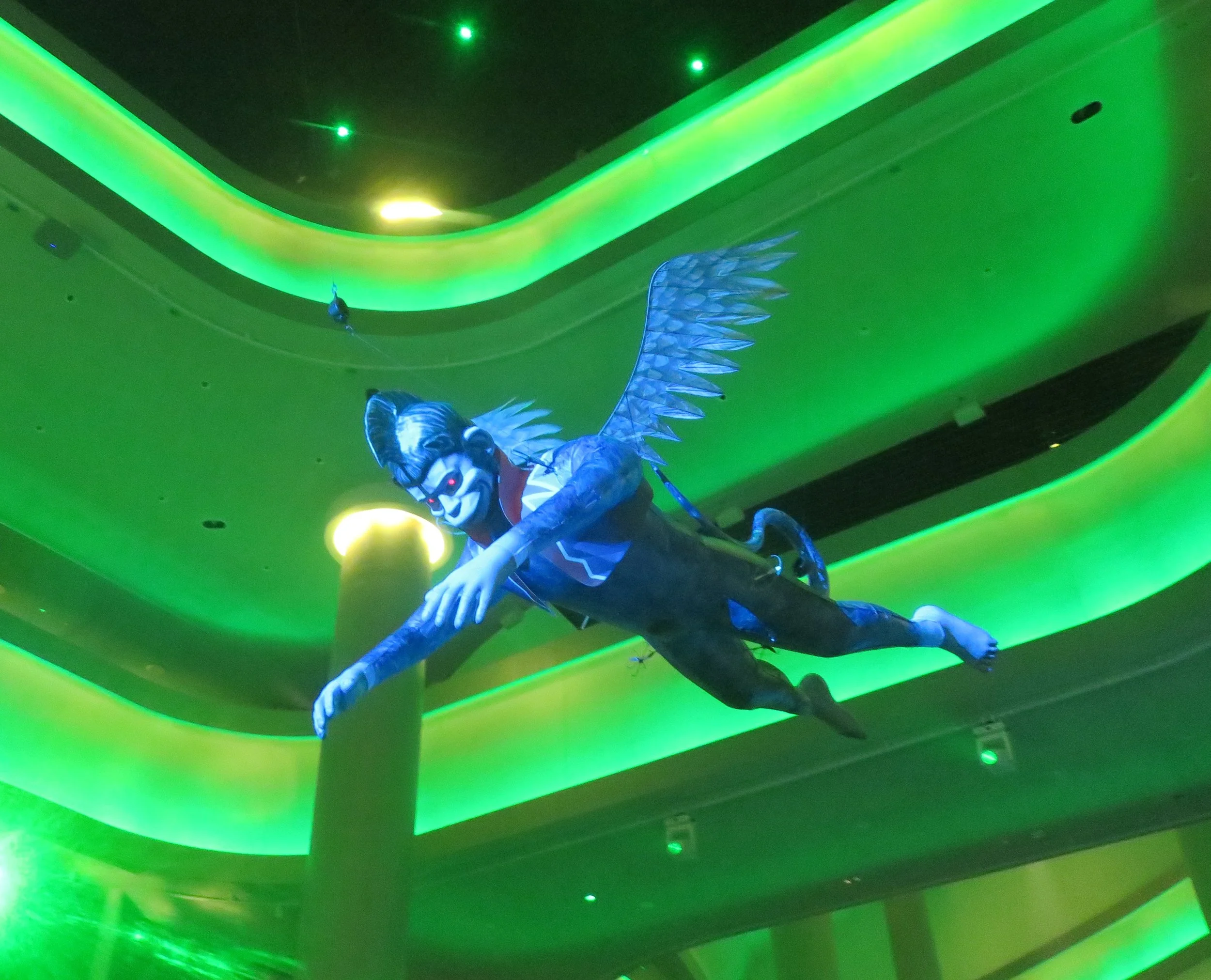 After the show, a short ‘after-show’ performance was presented in the Sphere’s Atrium. The lighting was emerald green. The Wizard offered photo opps. Merch and Oz kitsch were available for purchase. We did get a chance to photograph the huge flying monkeys hovering over the crowds.