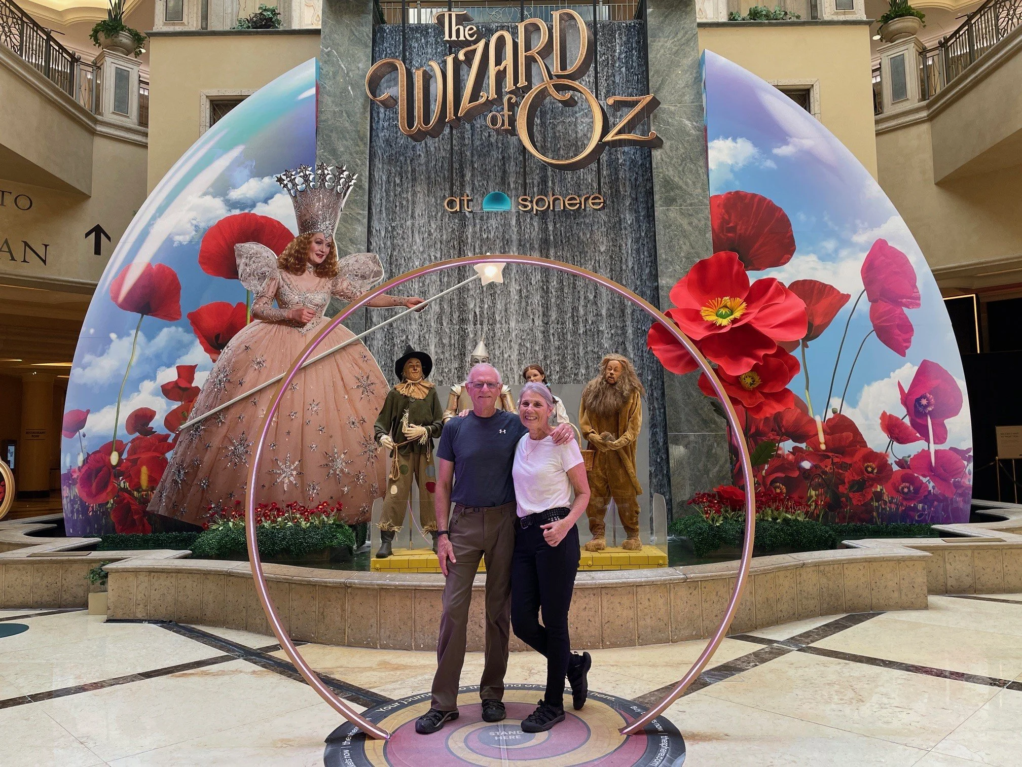 The Sphere is owned by the Venetian, only a few blocks away. We had an expensive lunch at the Yardbird restaurant there before the show. We caught the Venetian’s promotional Oz exhibit on our way. It was quite popular with the tourists… and us.