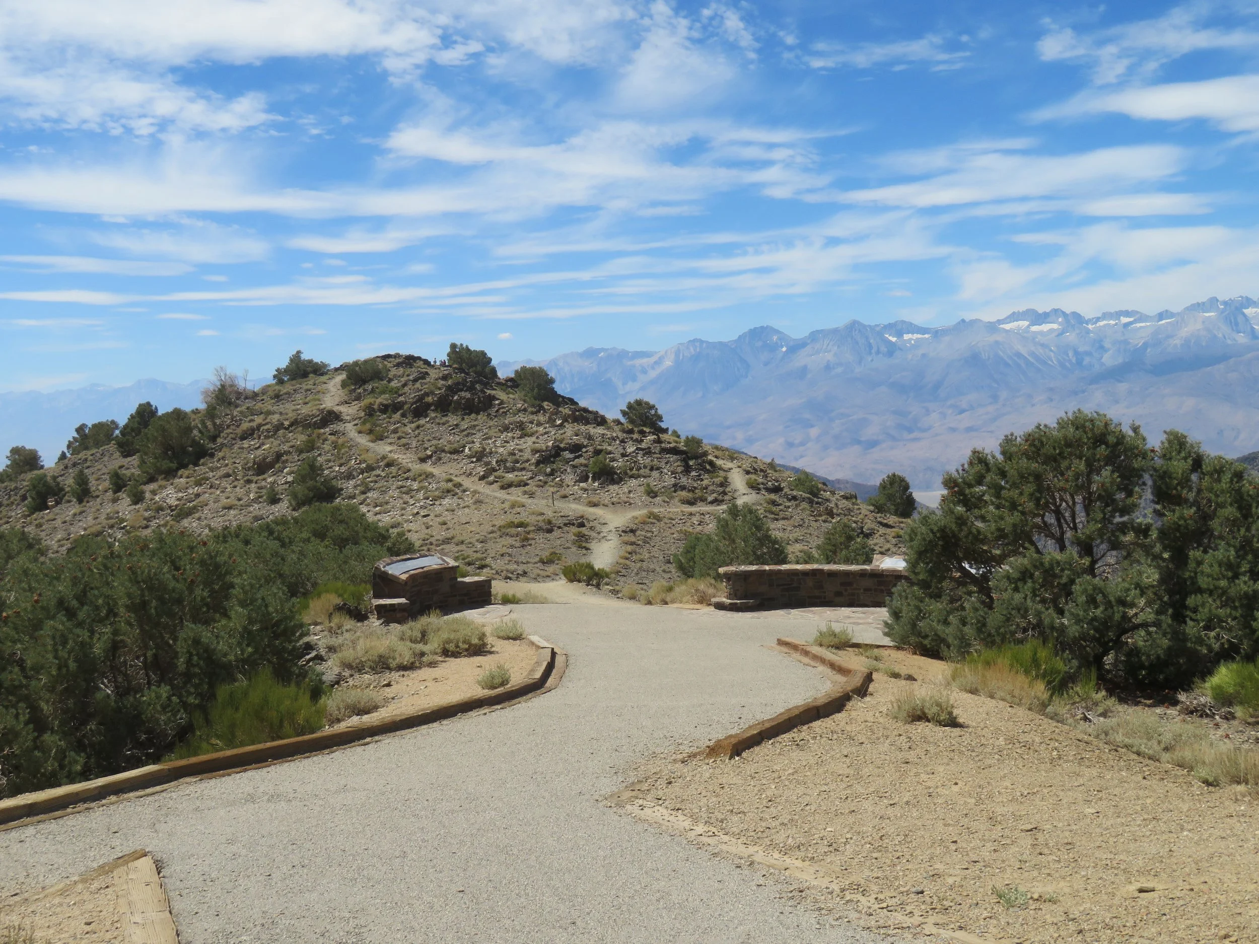 Further up the road was the Sierra View Vista Point, which provided an opportunity to stretch our legs and take a short walk on a well-trodden gravel path. At an altitude of 9300’ (2835m), the point overlooks the Long Valley Caldera, and we could see for miles.
