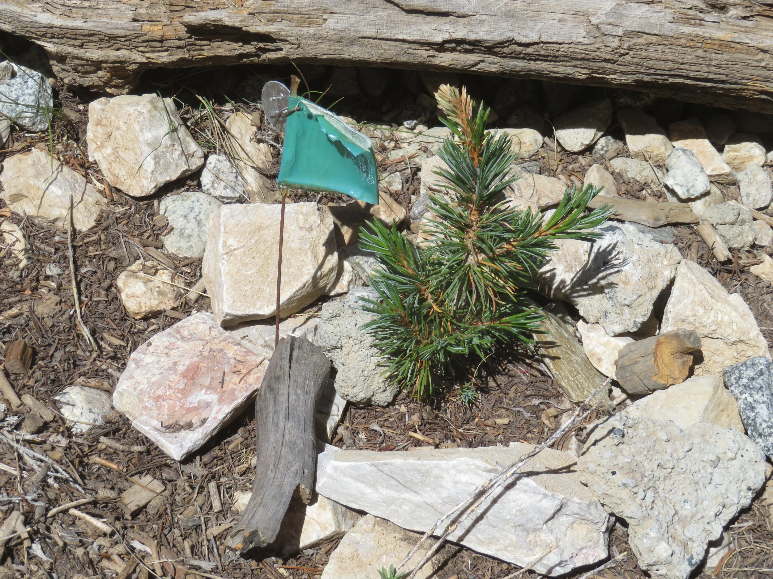 Due to their harsh environment (high altitude, extreme temps, harsh winds, short growing season, poor soil), bristlecone pines grow very slowly. Some years it’s as little as 1/100th of an inch and sometimes, during particularly stressful periods, they stop growing in height and concentrate on expanding the diameter of their trunks. Just outside the Visitor Center we spotted some bristlecone seedlings. These tiny little guys might grow to be Methusalehs in a few millennia.
