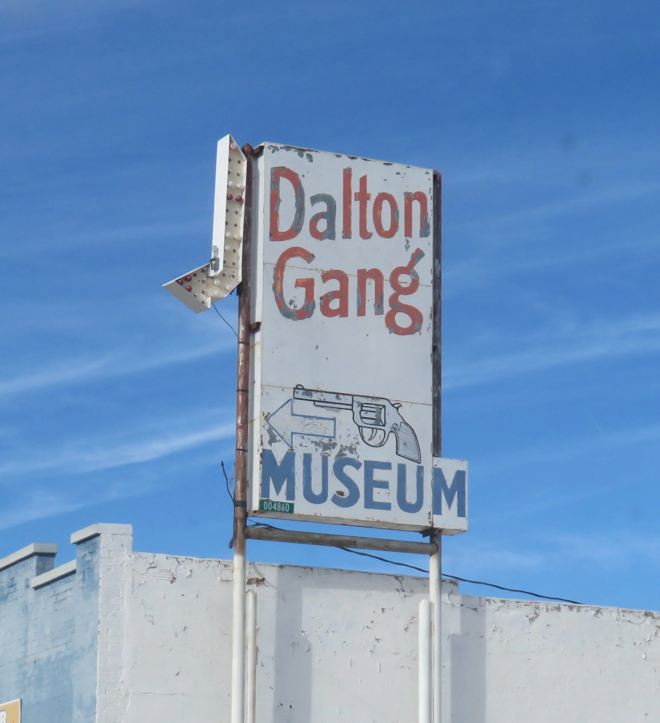 /We left Dodge City, Kansas, and zipped down US-54. We made it just about 40 miles when we saw a sign in downtown Meade, Kansas: Dalton Gang Hideout. Uh-oh… detour.