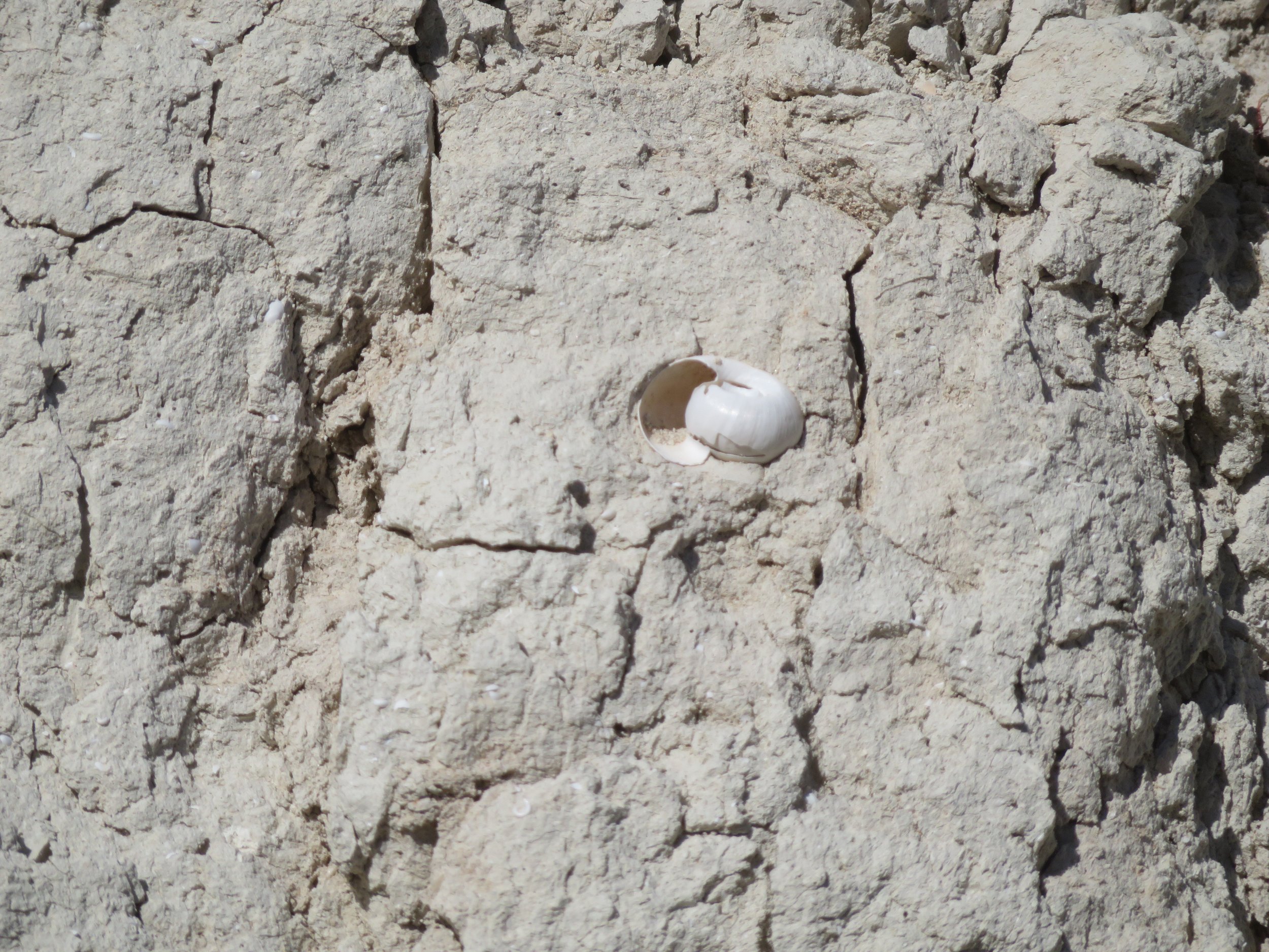 Walking through the trench was a bit disconcerting with tall, unstable mud walls towering above us on both sides. We searched for fossils and found a couple of seashells embedded in the walls, but nothing else.