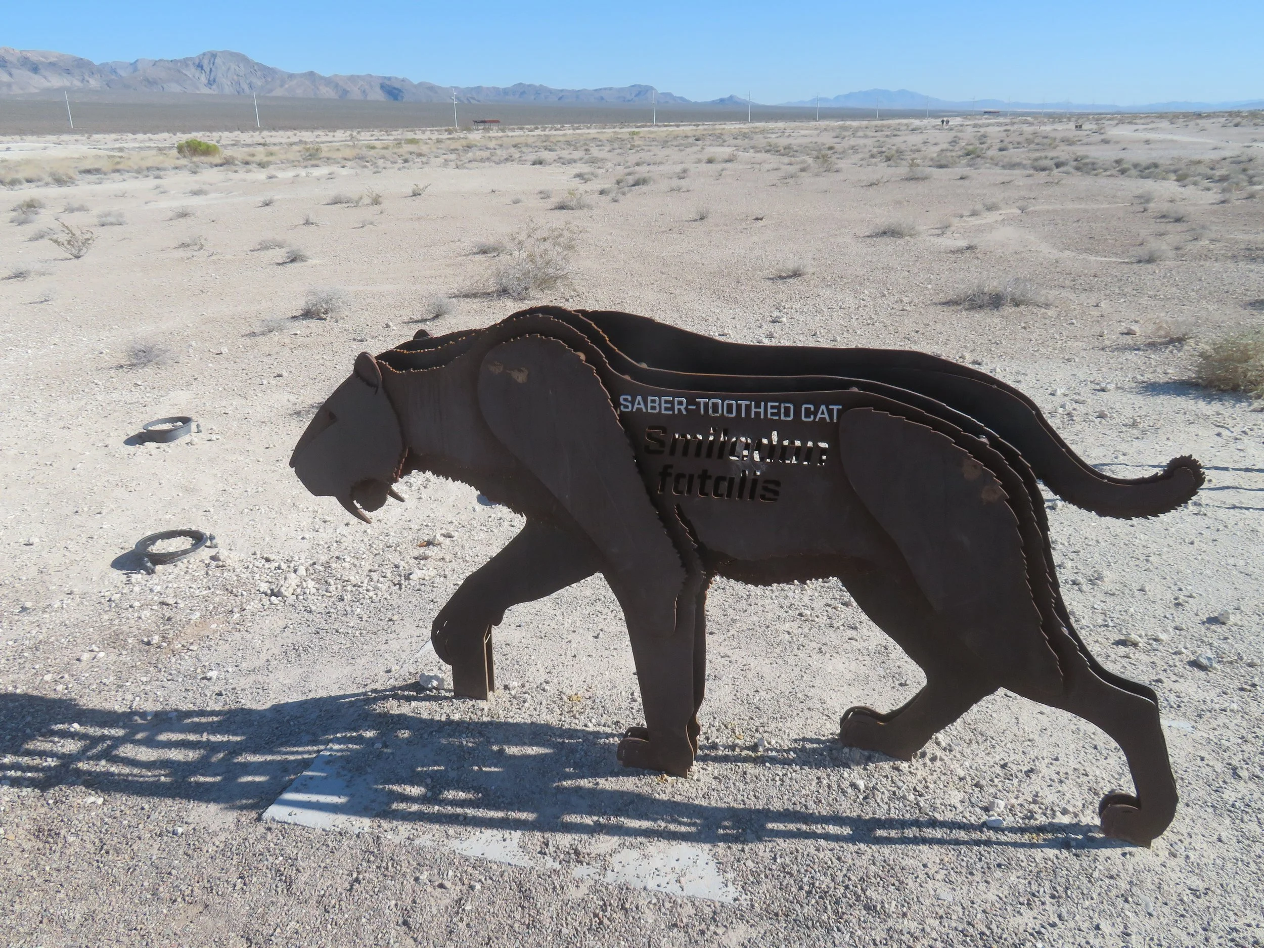 Tahoe Mack conceived the idea for a Girl Scout Gold Award project when she was 15. A couple of years later, she partnered with Luis Varela-Rico, who fabricated the interior skeleton, and Dana Albany, who created the external metal skin made from repurposed objects collected during clean-up efforts, giving new life to discarded materials while paying tribute to the ancient giants that once roamed this landscape.’ A lesson in how repurposed trash and salvaged materials can be made useful. The sculpture debuted at the Burning Man Festival in 2019 and was later donated to the state park as a permanent installation representing Tule Springs.