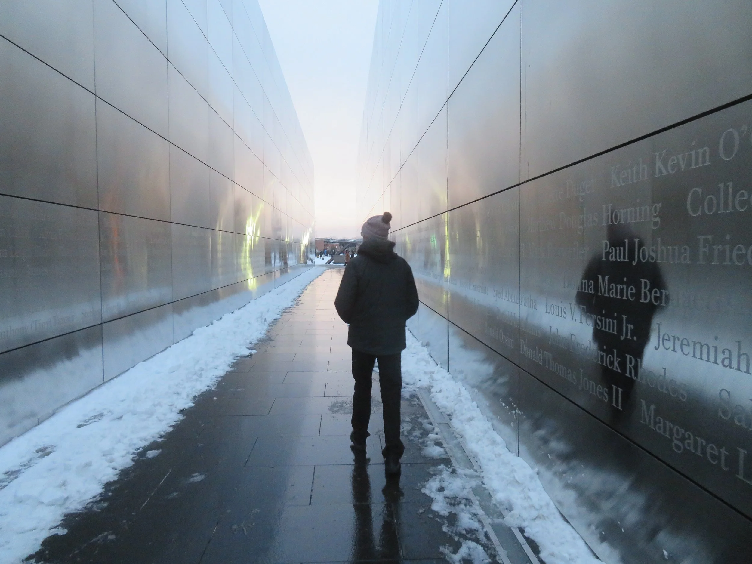 We caught the next to last ferry back to Liberty State Park. Before we returned to Blanche, we took a few minutes to see the park’s 9-11 Monument entitled ‘Empty Sky’. The monument ‘honors the memory of the 749 people that lived in or had ties to New Jersey that lost their lives at the World Trade Center on September 11, 2001. The names are placed randomly on the twin 30’ tall, brushed stainless steel walls.