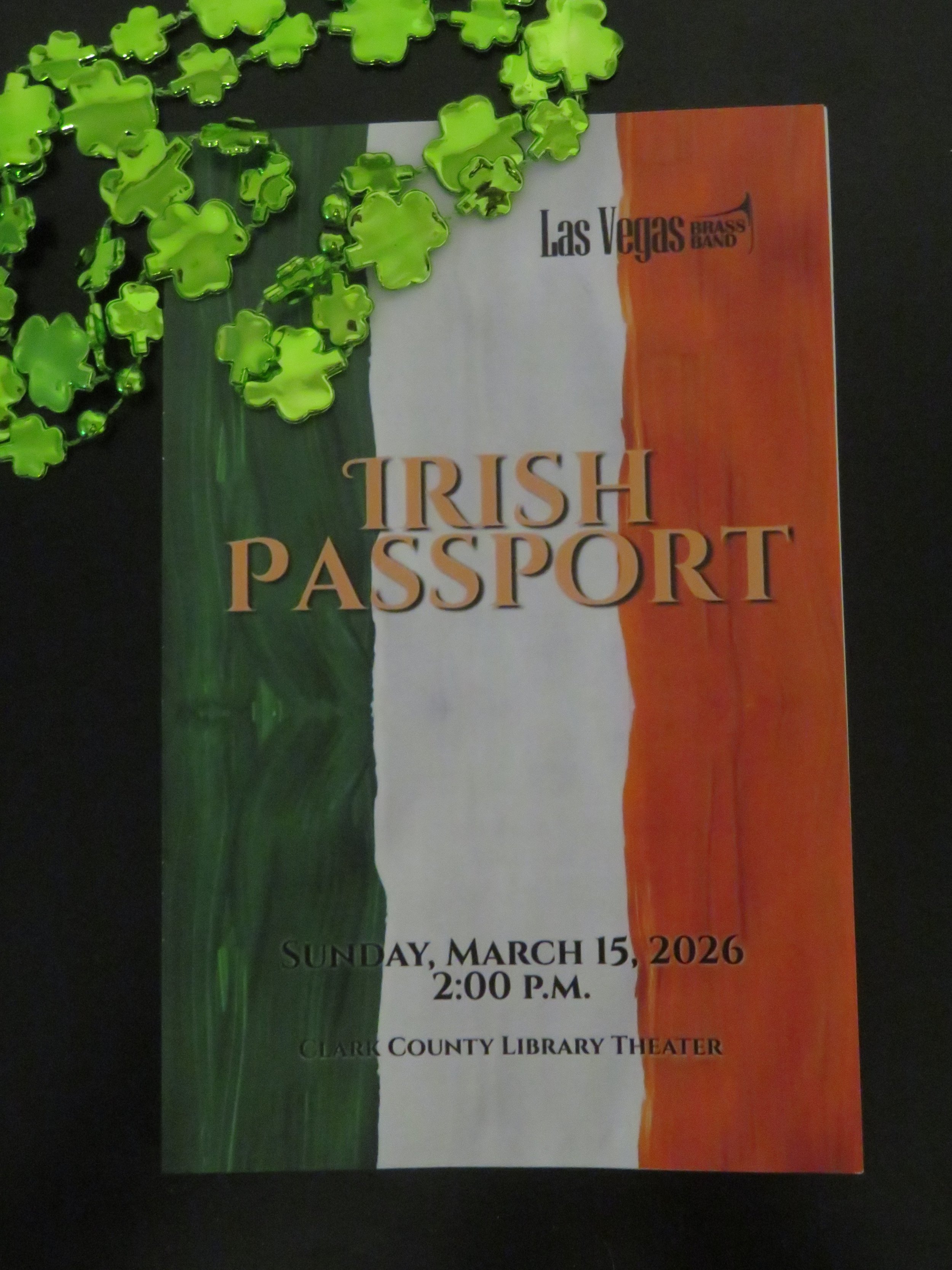 With all my complaining about no marching bands at Henderson’s St. Patrick’s Day parade last Saturday, David and I attended the Las Vegas Brass Band Concert on Sunday at the Clark County Library Theater, and we got our share of brass! It was free to the public and over-the-top excellent! Talk about getting your blood flowing and your spirits rising, the music is rapturous. It delights your soul.