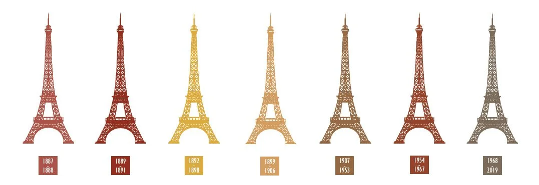 The colors of the Eiffel Tower throughout the years