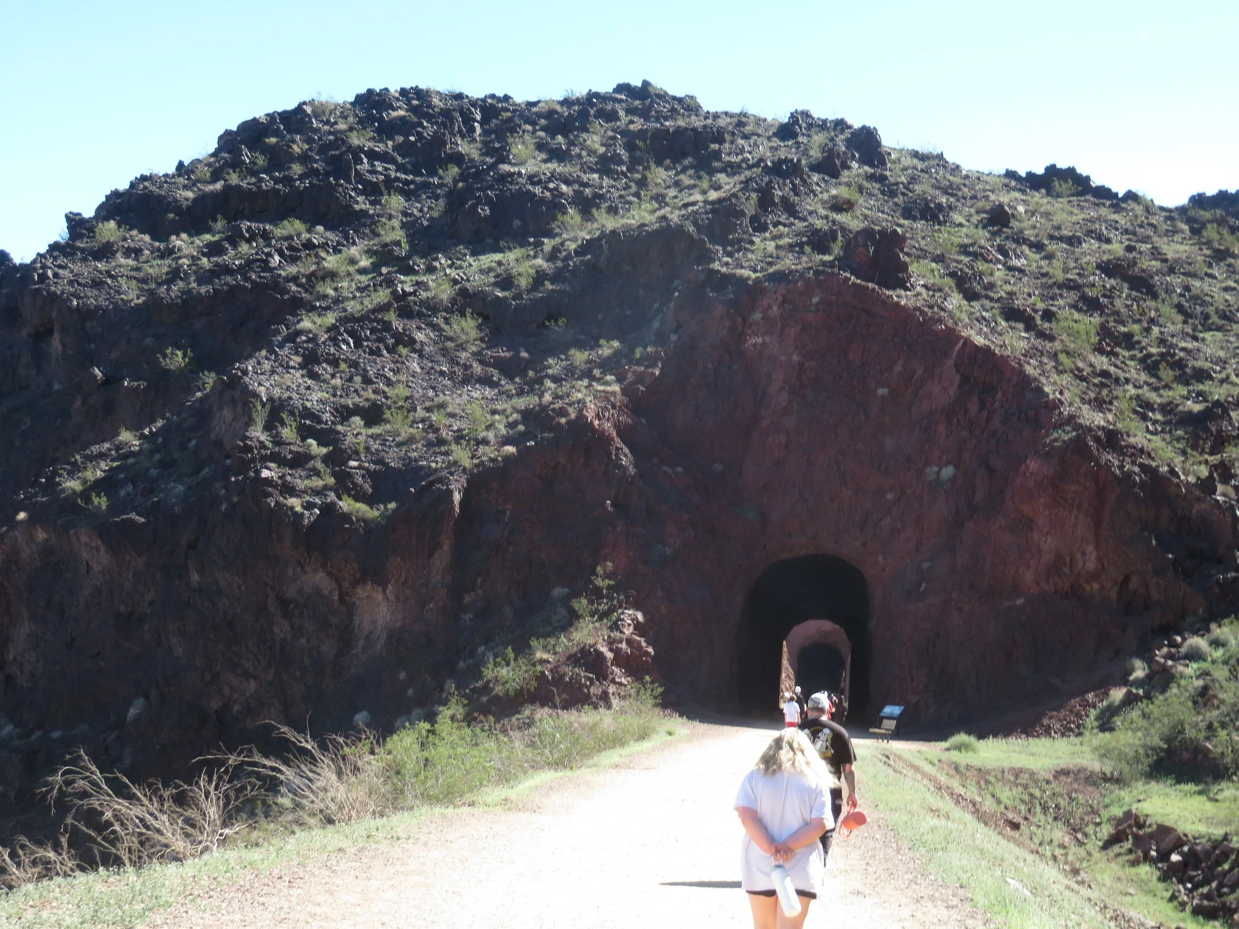 One of our favorite places to walk locally is the Historic Railroad Tunnel Trail in Lake Mead National Recreation Area. It’s a fairly easy 4-mile out-and-back, hard-packed gravel path on the abandoned railroad line that was built to transport materials and supplies for the construction of the Hoover Dam back in the early 1930s.
