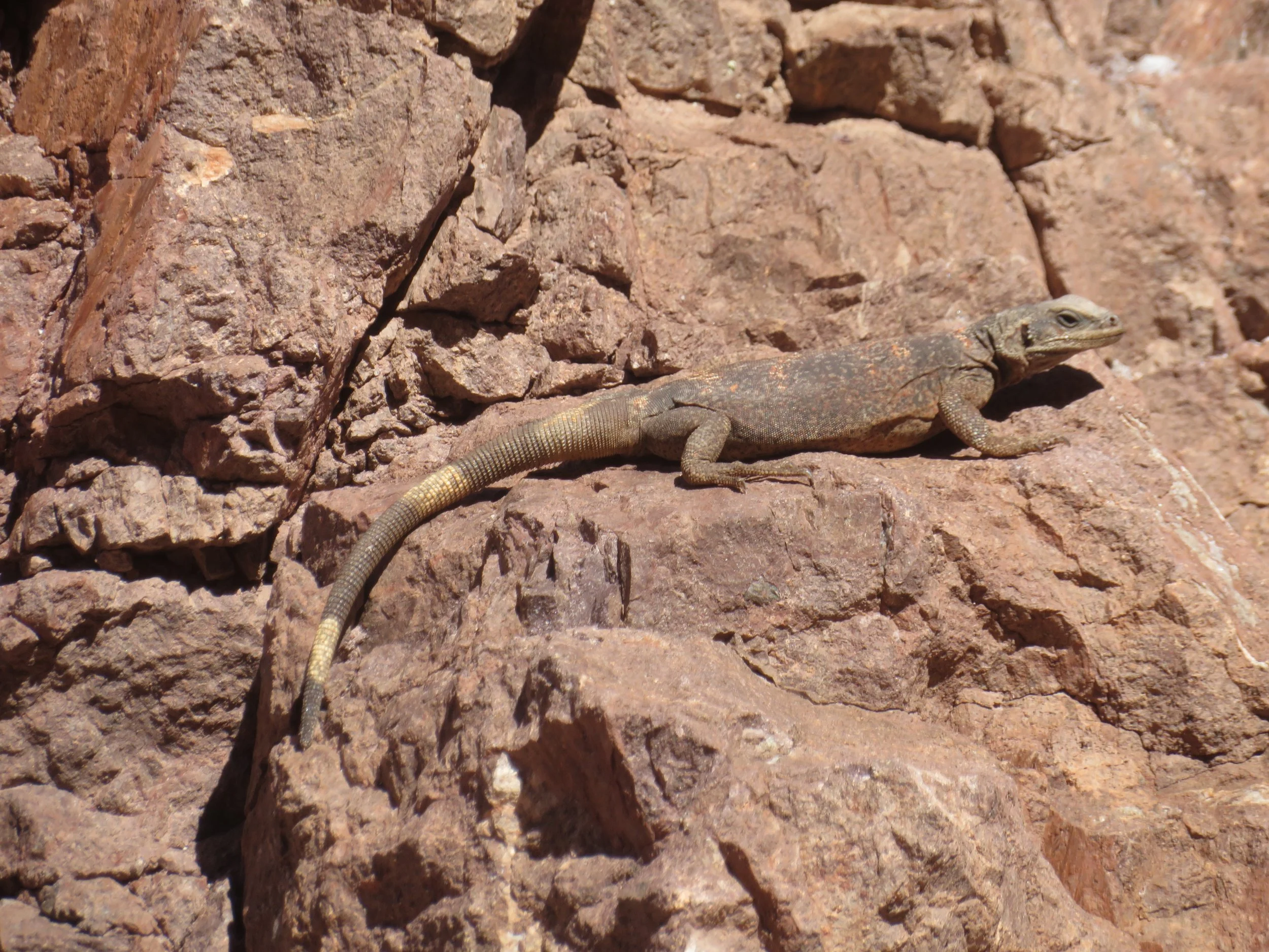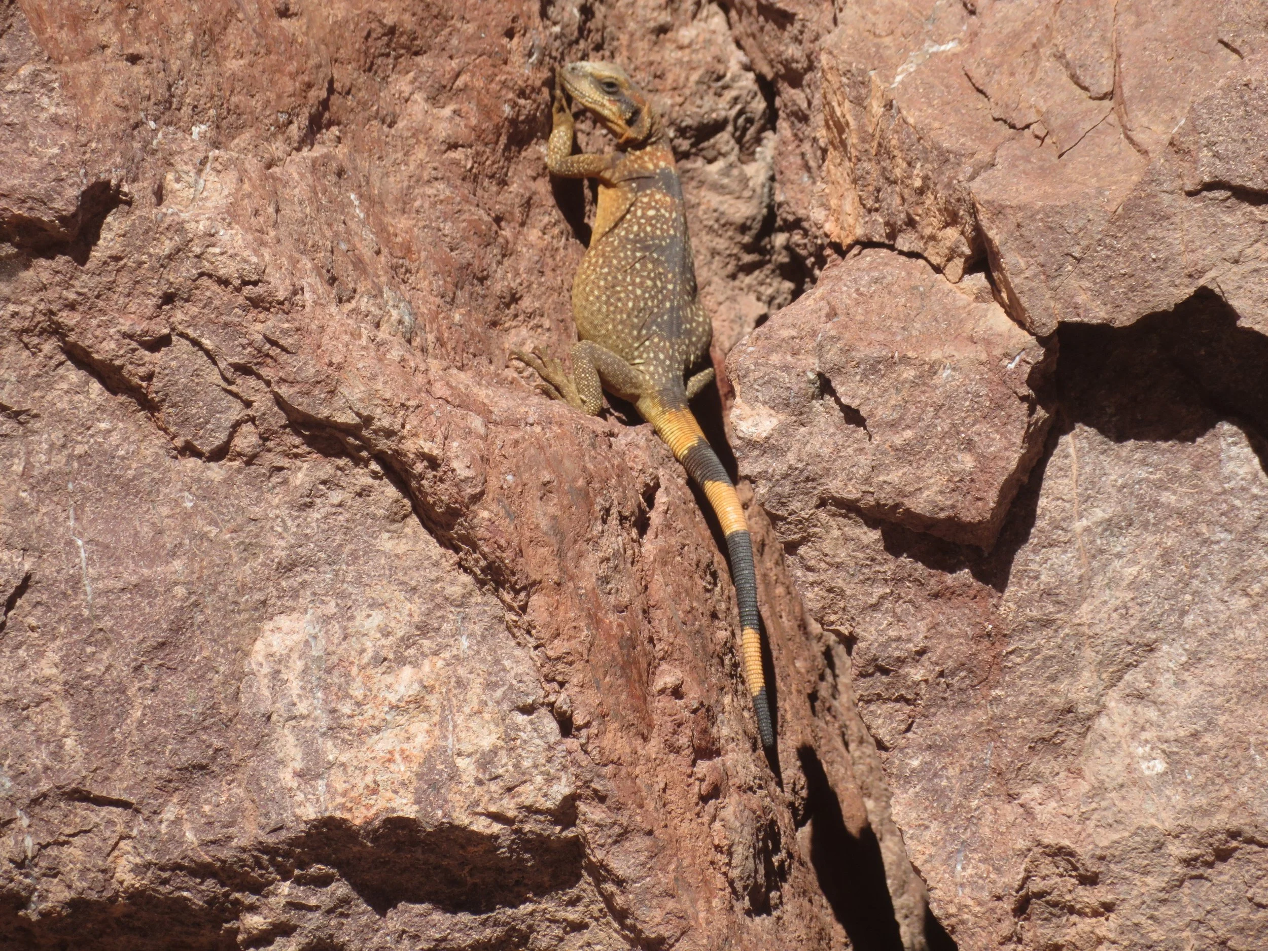 We pointed out our chuckwalla find to a 6-year-old hiking with his Mom. He pointed out that there was not one chuckwalla, but two. He had spotted yet another fat chuckwalla perched higher up on a rock, sunning himself, his long striped tail sweeping behind him.