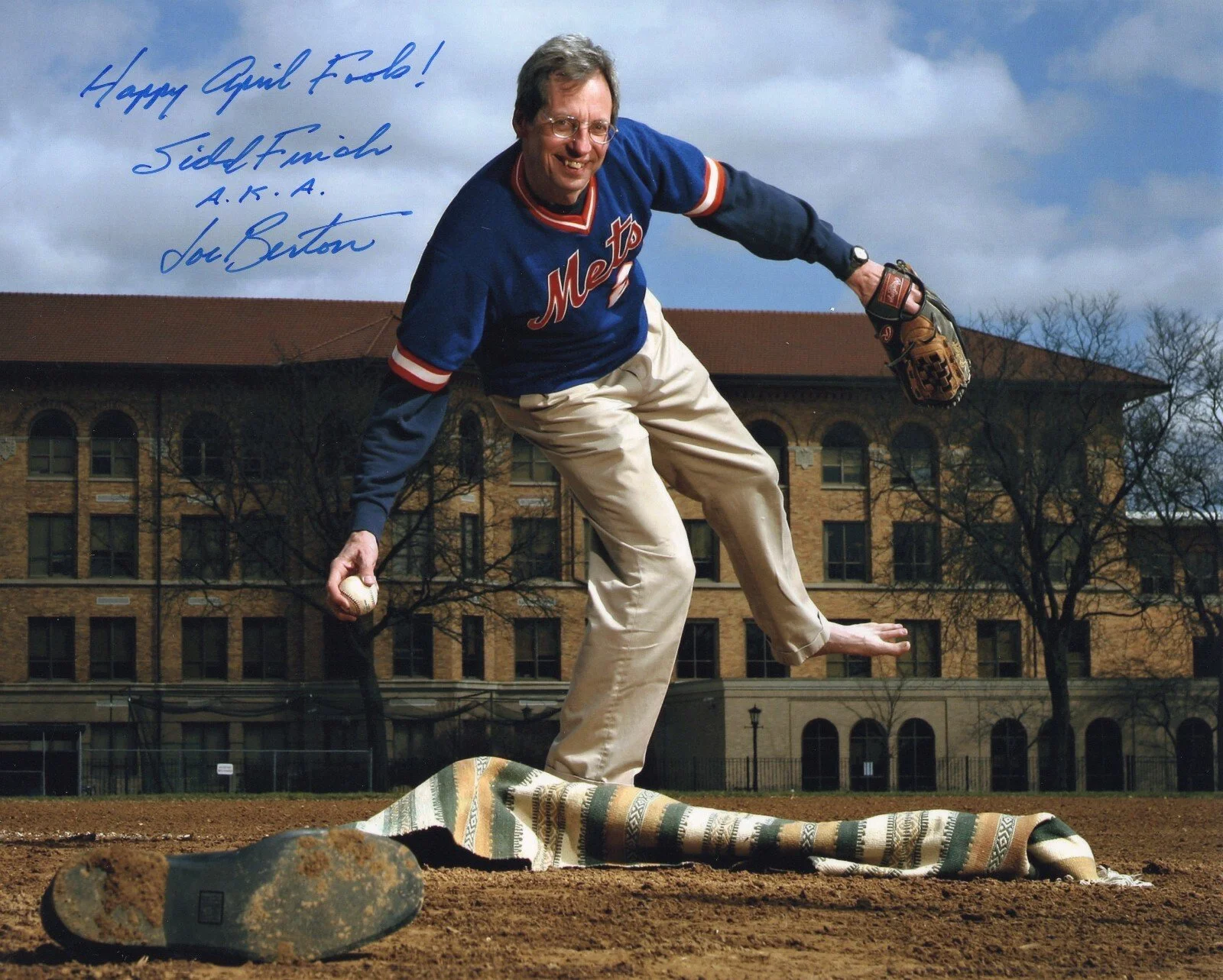 On April Fool’s Day 1985, George Plimpton, Sports Illustrated writer, introduced rookie pitcher Sidd Finch to the world. The right-handed pitcher, Mets #21, could blaze a ball over the plate at 168 mph. He got his junior high school art teacher friend, Joe Berton, to pose as Sidd. It was quite the hoot.