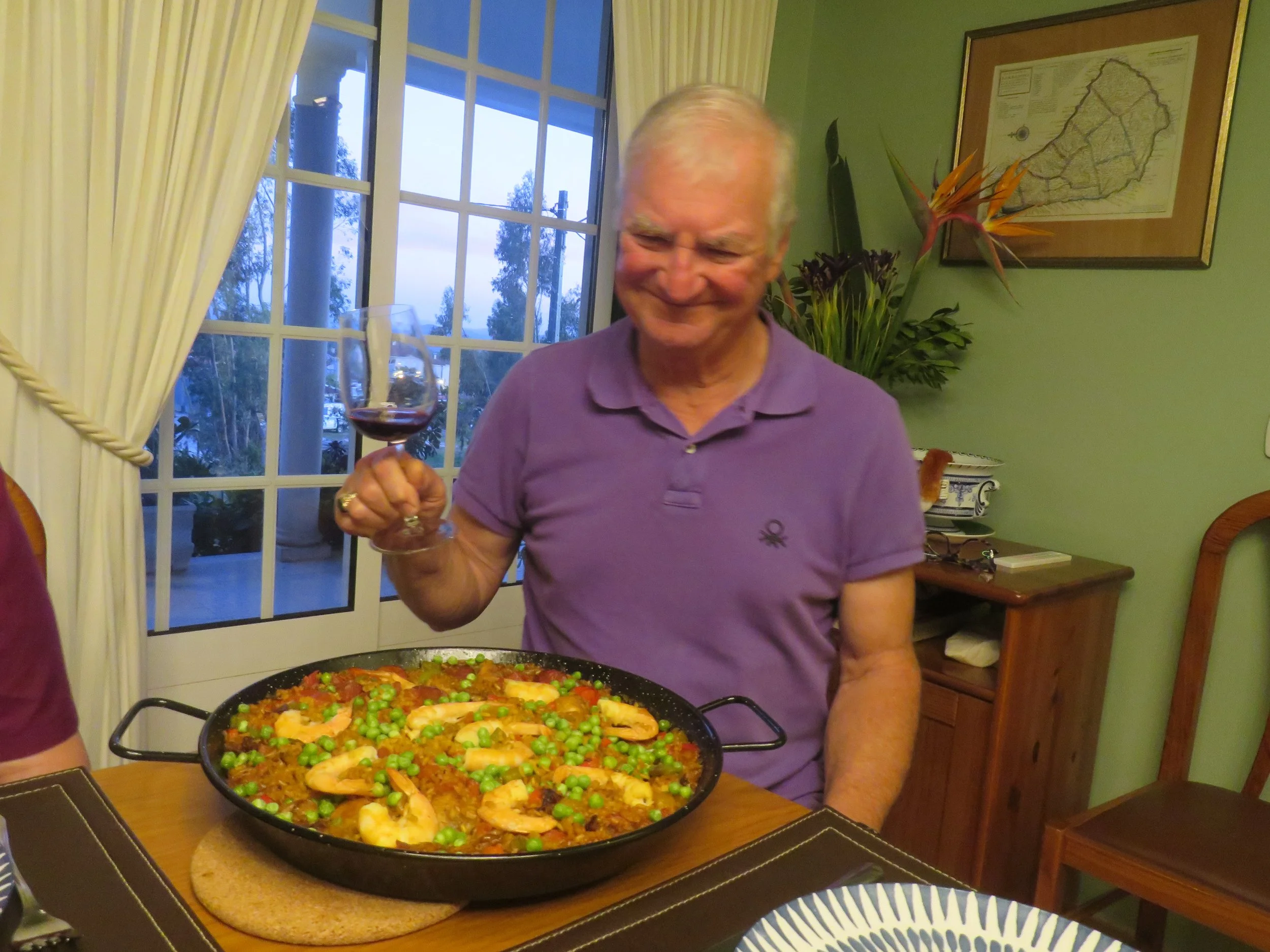Dinner served in the dining room was a grand affair. Michael presented the paella with his usual flair. It was delicious.