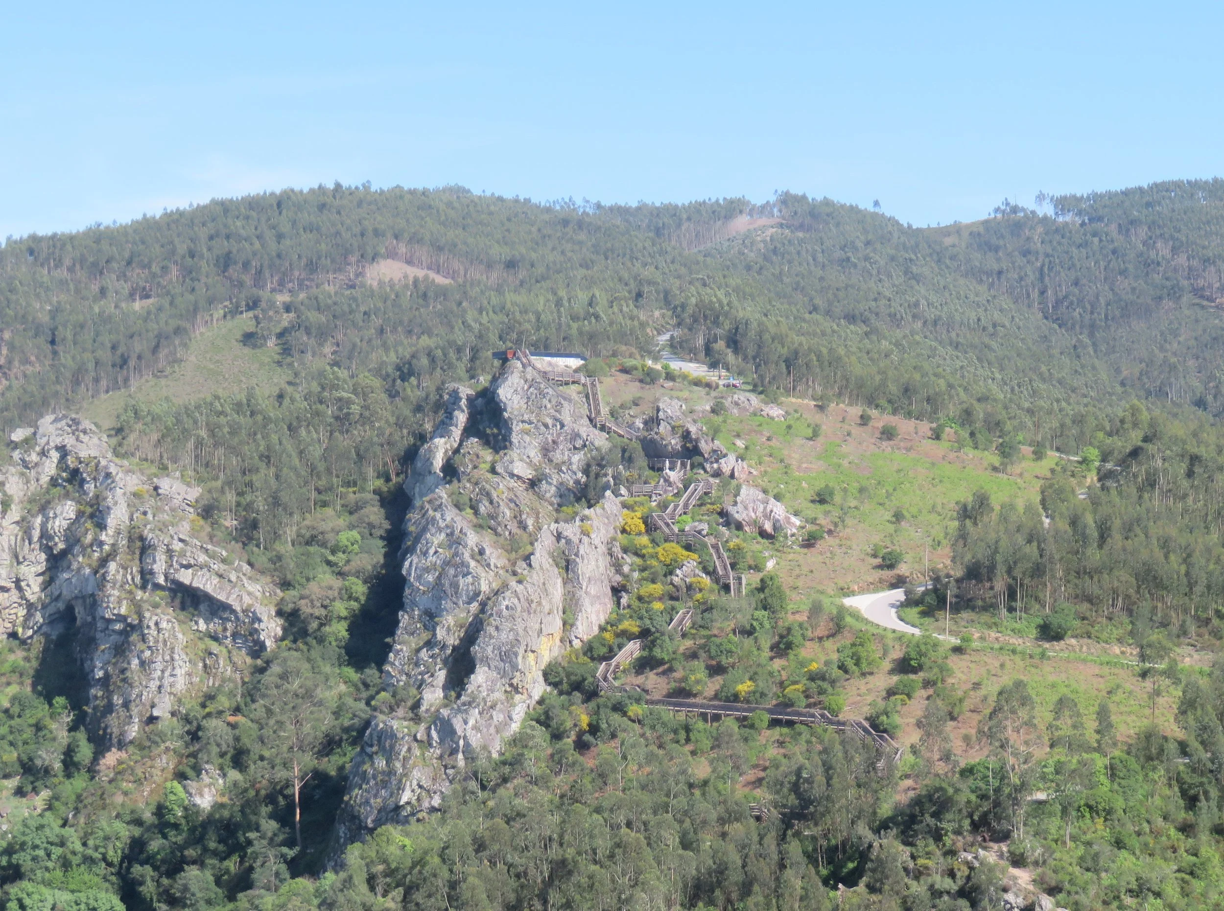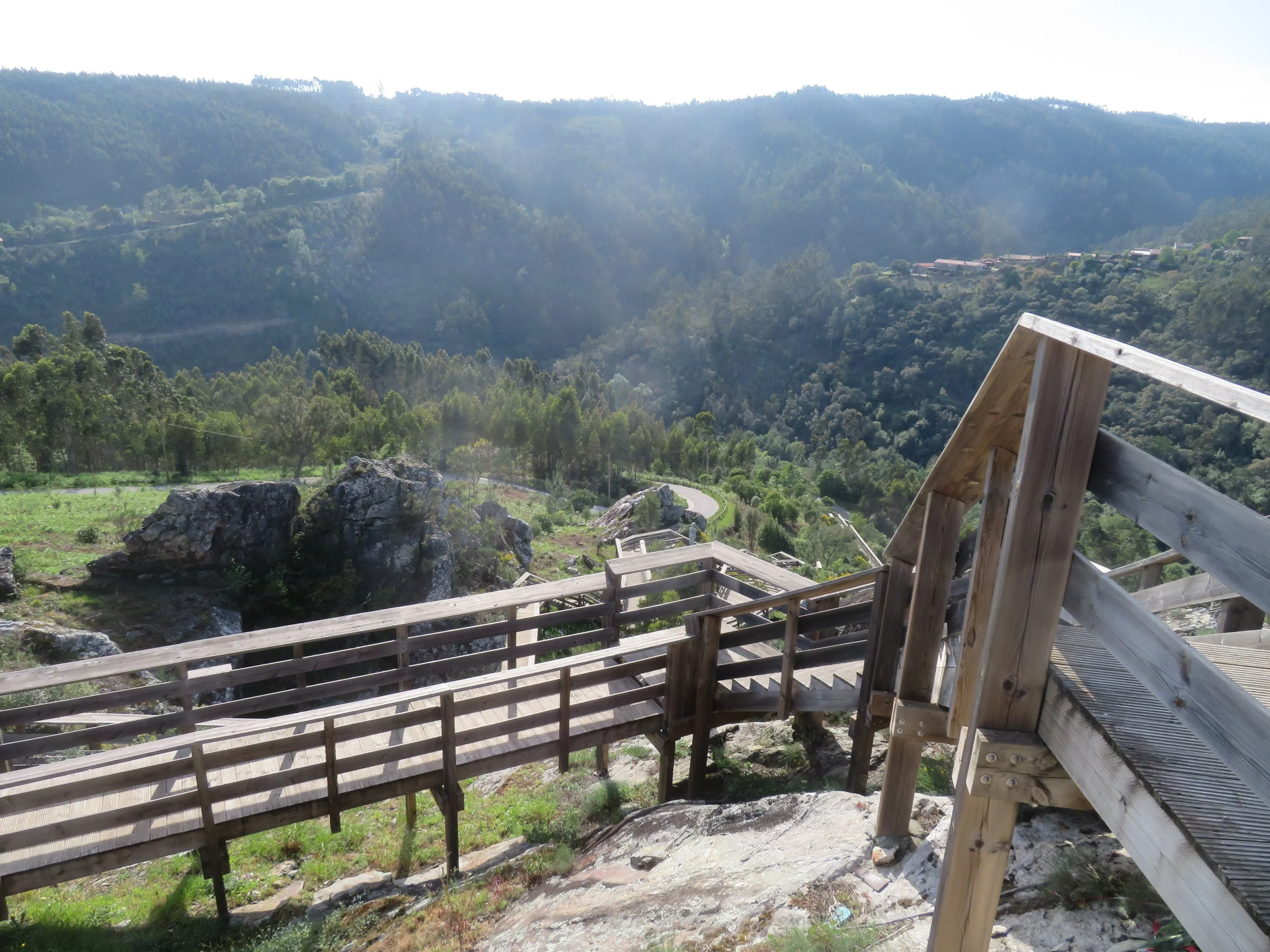 From an overlook, we could look down on São Simão and see the mile-long (1730 m) wooden pathway leading up from the village.