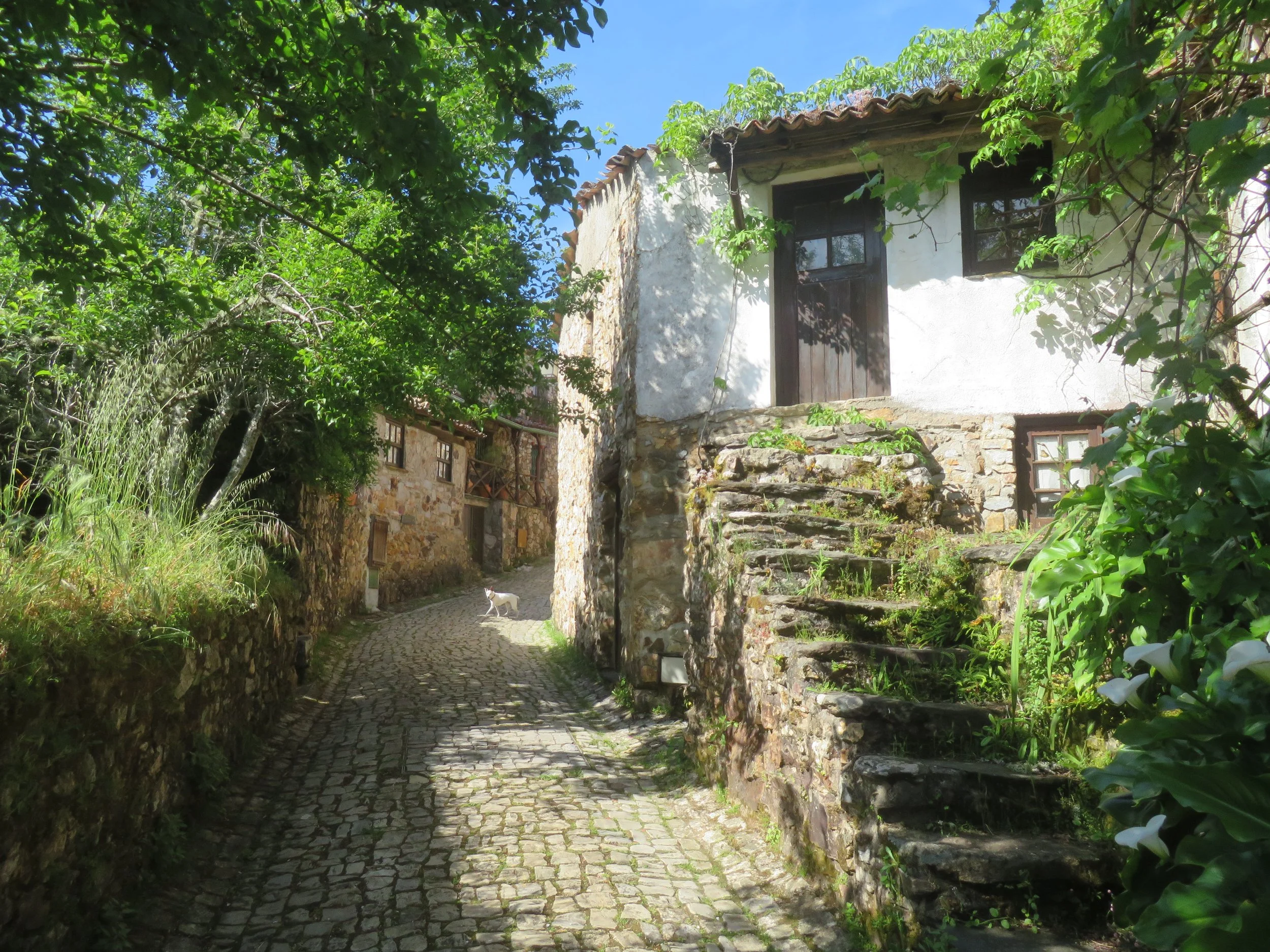 After a cold beer at the cafe, we headed out to the ‘schist’ village of Casal de São Simão, a 30-minute, rather tortuous drive away. According to Wiki, “Schist Villages (or Aldeias do Xisto) are a network of 27 restored, traditional hamlets located in the mountainous interior of central Portugal. These villages are famous for having nearly all of their houses, structures, and paved streets built from schist, a durable, layered metamorphic stone that is abundant in the region.”