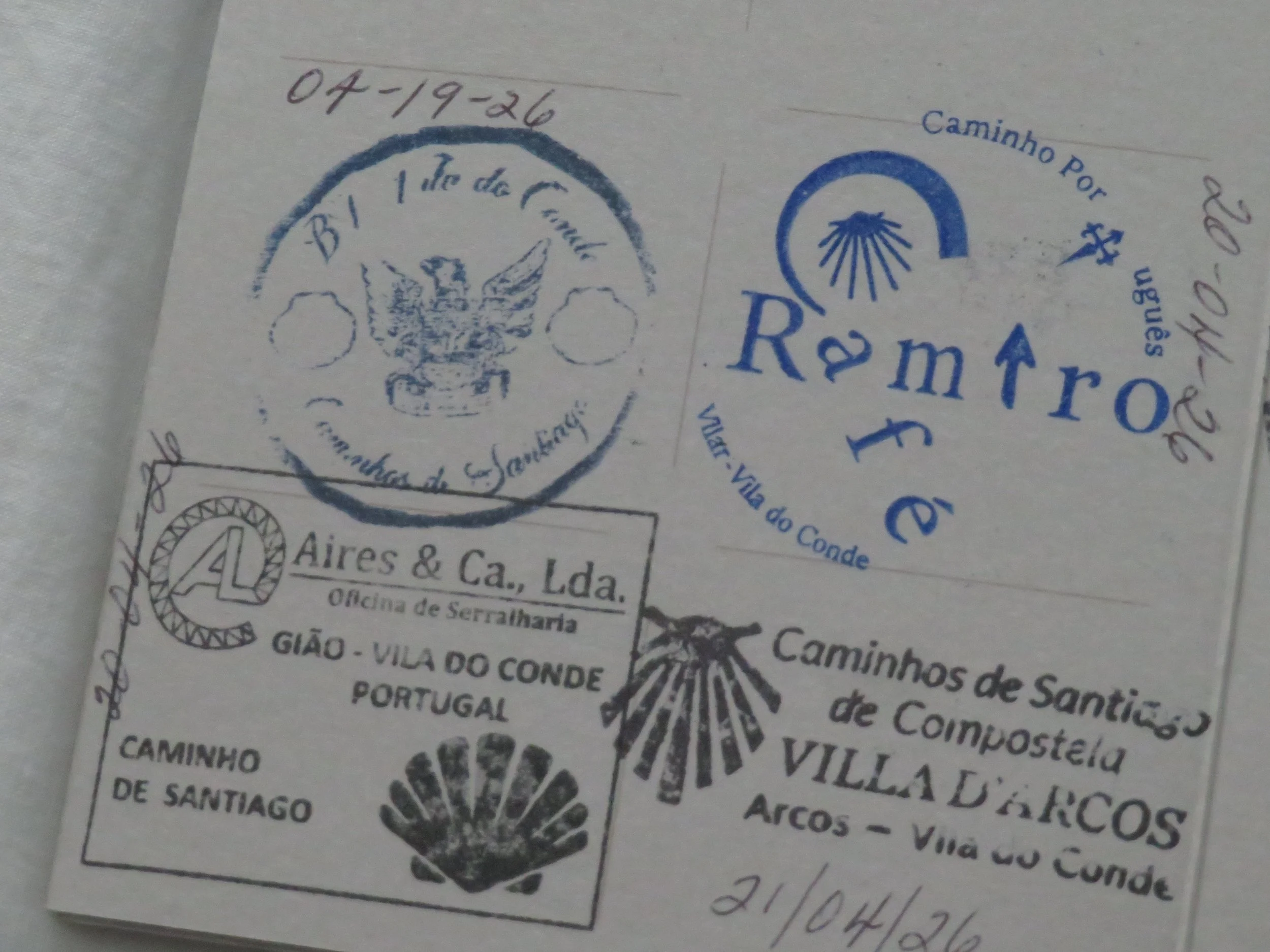 We have been getting our ‘carimbos’ by the way… at least two a day. Every hotel and most restaurants and cafes will gladly stamp our ‘credencial’. We even got one at a fire station! Sometimes the stamps are plain and boring. Ramiro Cafe had a pretty good one.