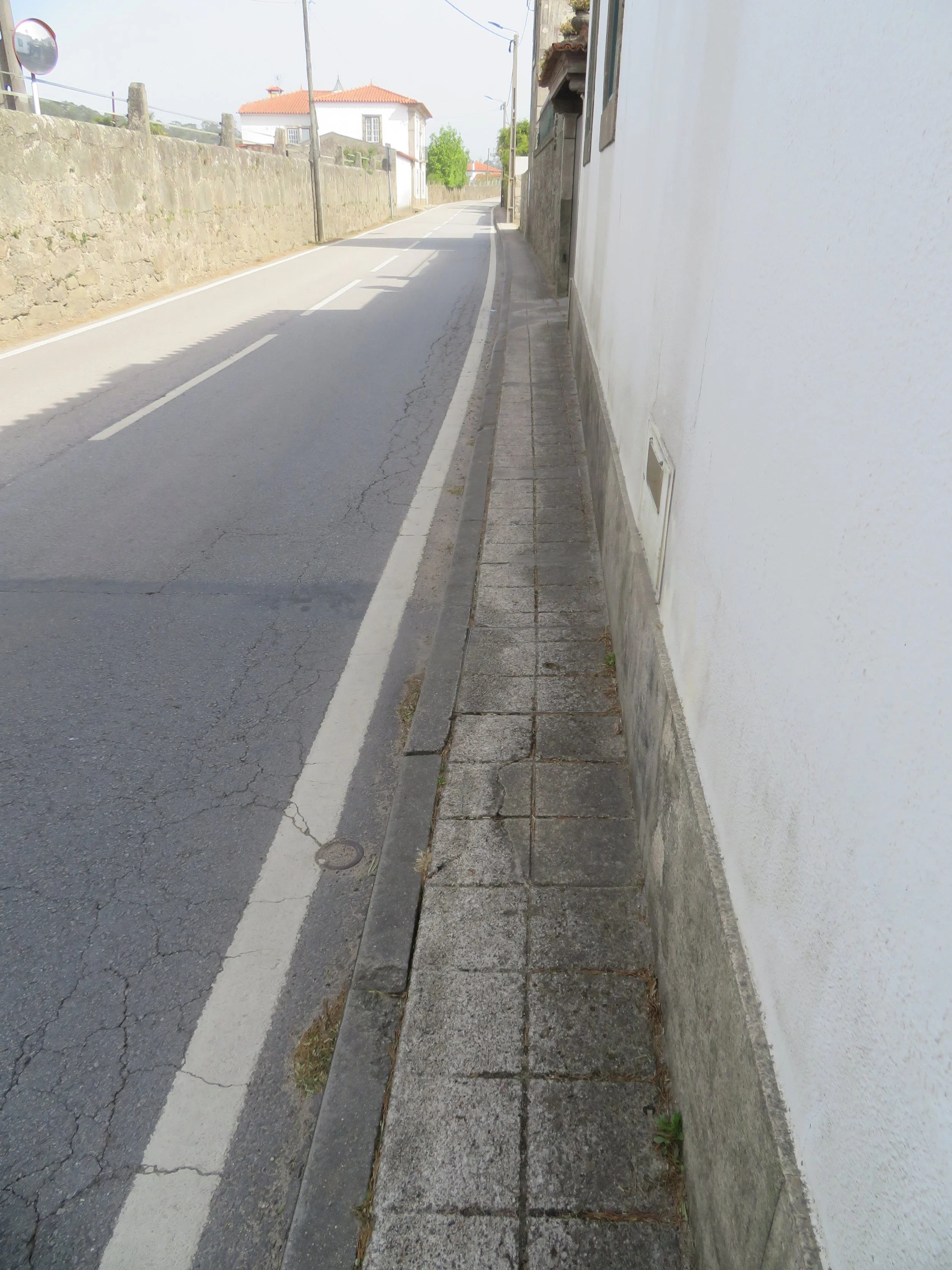 We passed through suburban villages, mostly walking on roadsides. Drivers seem aware of pilgrims and walkers, and slow down when they pass. Sometimes there’s a sidewalk… a very, very narrow sidewalk that comes and goes.
