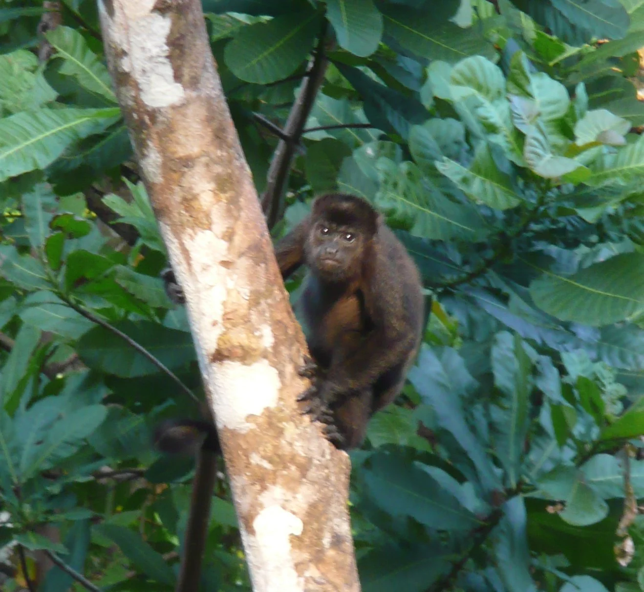 The women went visiting and Amelio found us a guide to go through the jungle up into the hills in search of the endangered Harpy Eagle. We switched into our hiking boots, crossed the river in a panga and set out along a muddy red clay path. At first the path meandered past some huts, but then the trail became more dense. Our guide had a machete in hand and chopped his way through the thick jungle growth. The trail was quite apparent some times, but the jungle quickly takes over when trail use diminishes. Leaf cutter ants, indomitable and ubiquitous, marched across the trail in long lines. It was fascinating watching the pieces of green leaf, held high above their heads, pass by as if moving on their own.