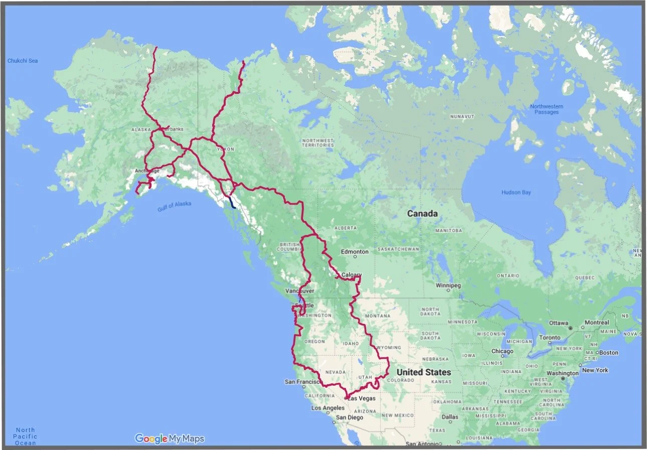 We’ve both been to Alaska many times - both for business and for pleasure. In fact, David was stationed in the Adak, way out in the Aleutian island chain for a year while in the navy. We’d never driven there, however, and we decided that this was the year. The plan was to take our time up through Canada, traverse the Alcan highway, and eventually make our way all the way north to the Arctic Ocean - the only ocean we’d not dipped our toes in. The trip took us a little over months and we travelled 16,082 miles, and was wonderful. Come travel with us…